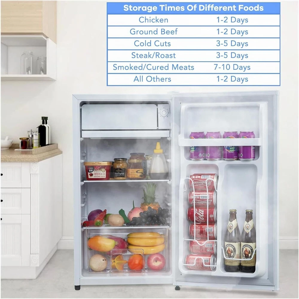 About this item Compact and Convenient: Easily move this portable mini fridge to any location for quick access to refreshments and snacks, ideal for dorm rooms, offices, bedrooms, or outdoor settings. Efficient Space Utilization: Maximize storage in tight spaces with this mini fridge, perfect for keeping beverages and perishables chilled without taking up much room. Versatile Storage Solution: Use this mini fridge for overflow items like beverages, snacks, medications, or skincare products, providing easy access and organization. Savings and Sustainability: Save on energy costs with this energy-efficient mini fridge, offering cost-effective cooling without compromising performance. Customized Cooling Experience: Adjust the temperature settings of this mini fridge to suit your storage needs, ensuring optimal conditions for different items. Freshness Preservation By keeping fruits in a removable fruit basket, you can promote air circulation around the produce, which can help maintain their freshness for a longer period. Proper air circulation can prevent fruits from getting bruised or overripe quickly, ensuring that your fruits stay fresh and flavorful. Accommodate Large Items Removable shelves allow you to adjust the internal configuration of the refrigerator to accommodate larger, taller, or odd-shaped items that may not fit on standard fixed shelves. This flexibility in shelf placement enables you to maximize the available space and efficiently organize the contents of the refrigerator according to your specific storage needs. Floor Protection Adjustable feet help protect the flooring underneath the fridge by allowing you to level the appliance without causing damage or scratches to the floor surface. This feature is particularly beneficial for sensitive flooring materials such as hardwood, tile, or laminate. powered by