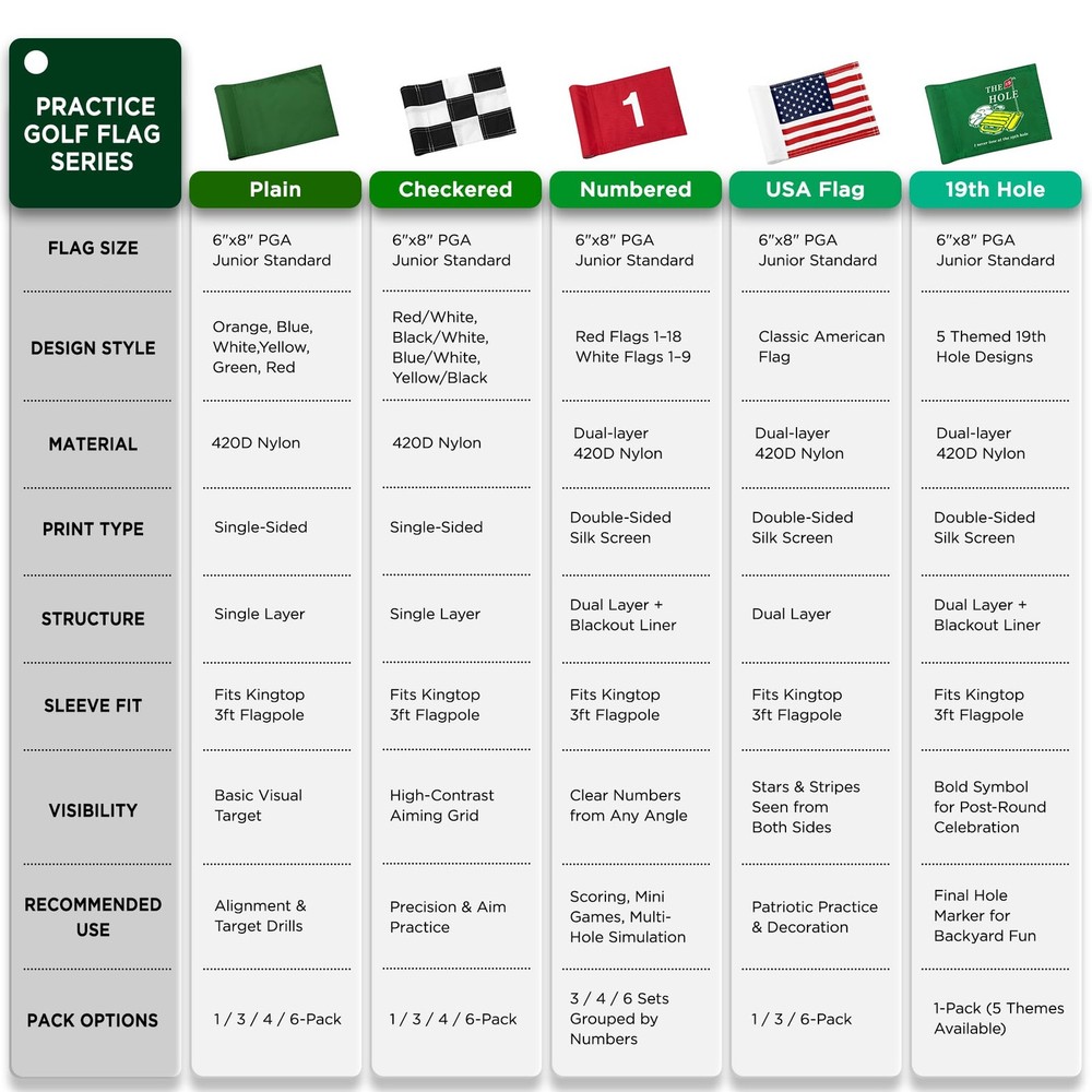 Upgrade your golfing experience with ’s Blank Golf Flag. Designed keeping the PGA Junior Flag standards in mind, it seamlessly fits 3-foot flagpoles. Constructed using premium engineering-grade 420D nylon, the flag promises vibrancy and anti-fade properties, ensuring that it remains as fresh as the day you got it. The meticulous double stitching offers impeccable durability, ensuring the flag’s edges remain intact. With an in-built ABS sleeve, mounting the golf flag is a breeze. Its range of colors lets you bring the authenticity of a formal golf course right to your backyard, making it an ideal choice for practicing or simply adding a touch of elegance to your private putting green. Whether you're an avid golfer or someone looking to elevate the aesthetics of your backyard, ’s golf flag stands as an unmatched choice. PGA Junior Standard Size: Specifically designed at 6" H x 8" L to fit 3-foot flagpoles, aligning perfectly with PGA junior flag standards. Vibrant Colors: Crafted from engineering-grade 420D nylon, ensuring vivid colors that resist fading even after outdoor prolonged exposure. Detailed Craftsmanship: Meticulously double-stitched to ensure edges don’t fray, offering robust longevity and consistent performance. Effortless Installation: Comes with a pre-sewn ABS sleeve on the left, fitting flagpoles within the diameter 3/8"< D <6/8", letting you set it up instantly. Perfect for Backyard Golfing: Elevate your backyard practice putting green! Available in an array of colors to match the backyard putting green, transforming your yard and creating memorable moments with friends and family.