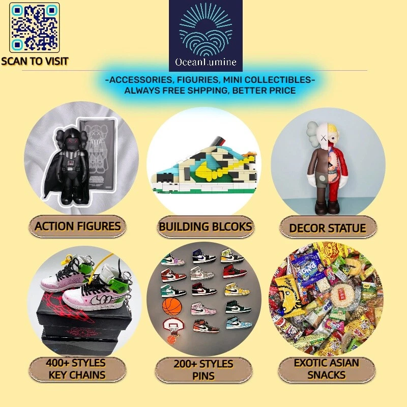 All Shoe keychain size is about Free eBay listing template designed by dewiso.com PLEASE READ BEFORE YOU PURCHASE Handcrafted and hand-painted 3D Mini Sneaker Keychains inspired some of the most coveted sneakers ever produced Materials as ABS Plastic (Soft Plastic) All Shoe keychain size is about 2 1/2 (L) x 1" (W) x 2" (H) The shoe Tongue is movable, it is not cracked or broken. Random shoe box styles will be given, if you have a preference please get in touch with me. These are all handmade and hand-painted with better paint, if you want to find a lower price please seek lower quality, my key chains have better quality and the price is firm on eBay. We've been selling these key chains for 3+ years, and have the most styles and best quality with super fast shipping. Search OCEANLUMINE on any search engine to visit us! CLICK ME FOR MORE STYLES Disclaimer Product packaging, specifications, and prices are subject to change without notice. All information about the products is provided for information purposes only. Please always read labels, warnings, and directions provided with the product before use. Shipping We will ship all orders within 2 business days of payment, we provide free upgrade USPS shipping service up to 2-DAY Priority if Urgent Contact We can be contacted at any time through eBay messages if you have any questions, comments or product requests. We will respond to you within 24 hours and do our best to help you out! Features and further details 3000+ keychains in stock with up to 400+ styles We do bulk orders with discounts and provide long-term business relationships More styles are available in my shop PP WORLD