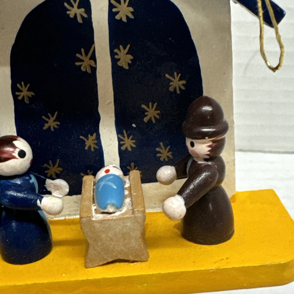 Miniature Wood Nativity Scene Ornament Vintage painted