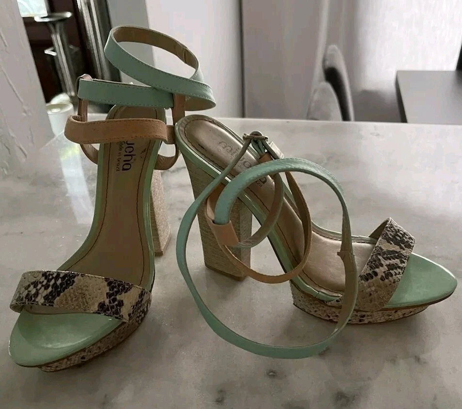 Item is pre-owned and in great condition! A few tiny blemishes on the shoes. Super adorable and comfortable heels! Shipped via USPS or UPS. Elevate your shoe game with these stylish and comfortable Miucha Women’s High Heel Corked Heels in size 8. Featuring a chic animal print pattern, these strappy heels are perfect for any occasion, whether you're traveling, attending a wedding, or just going about your daily routine. The mid-height heel and 3-inch platform provide just the right amount of lift, while the adjustable ankle strap ensures a secure and comfortable fit all day long. Crafted from high-quality leather, these heels also boast arch support, a non-slip sole, breathability, and a faux leather lining for added comfort. The Cuban style heel adds a touch of elegance, making these heels suitable for formal events or business settings. Shop now and step up your shoe game with Miucha Women’s High Heels.