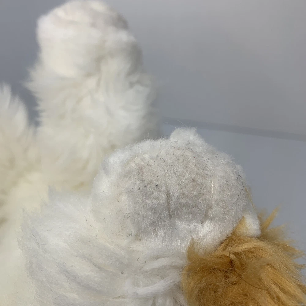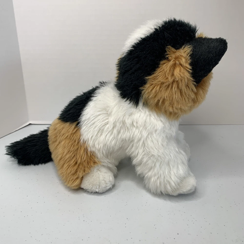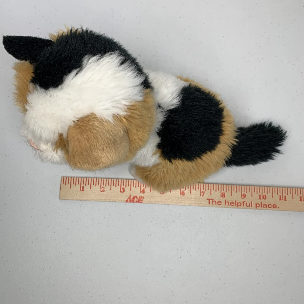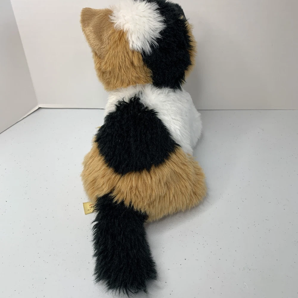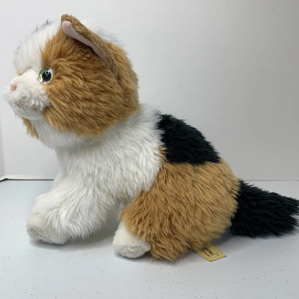 Calico Catitude! Adorable green eyed calico cat by Miyoni. Fluffy and cuddly. Paws have a little wear/discoloration from being playing with or sitting on a shelf. Can be cleaned by buyer if needed.