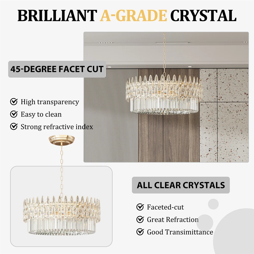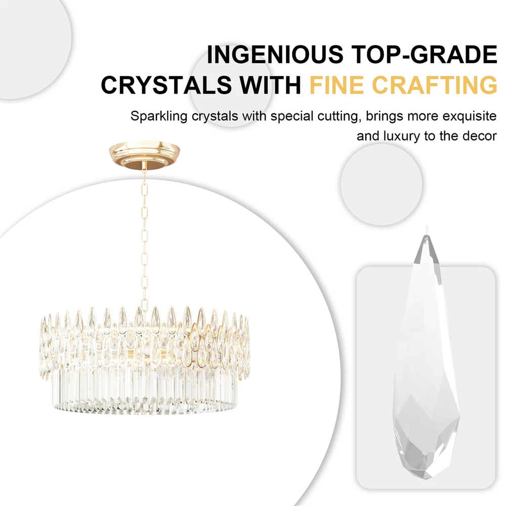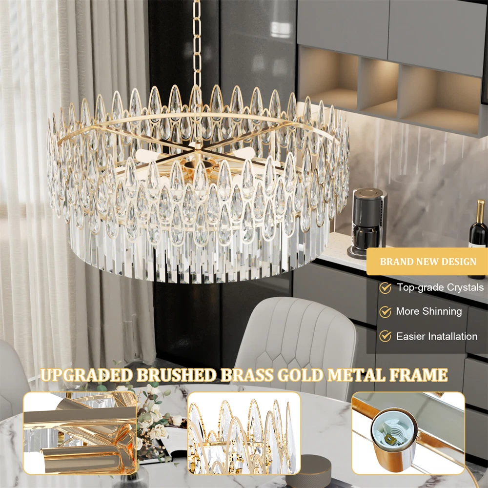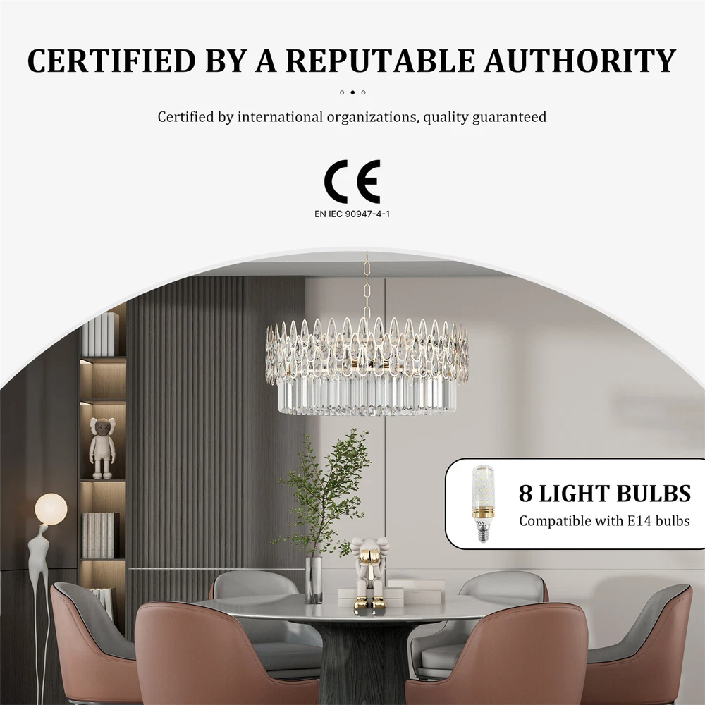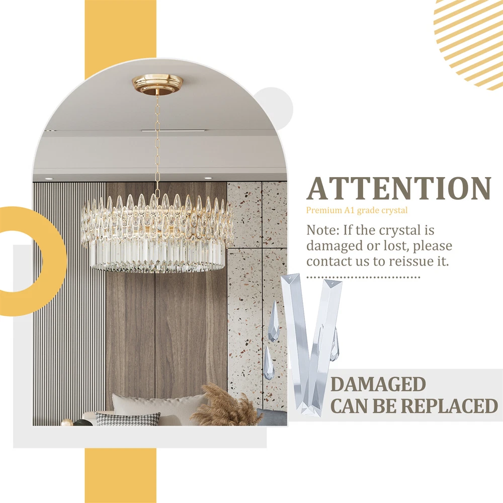Modern Crystal Raindrop Chandelier Lamp Dining Living Room 3colors Temperature Modern Crystal Raindrop Chandelier Lamp Dining Living Room 3colors Temperature US SELLER, FAST ARRIVAL! Features: Available in three different diameters to fit different room scales, from dining to foyer. The chandelier features a combination of long oblong and raindrop-shaped crystals. Oblong crystals provide an elongated silhouette, raindrop shapes add a fluid touch. Sparkling crystals with special cutting, brings more exquisite and luxury to the decor. Adjustable cable chains to customize the height according to your space and layouts. The top-grade crystals sparkle like diamonds, creating an enchanting dramatic beauty. Three lighting modes for settings, warm (2700K), neutral (4000K), cool white (6500K). Warm lighting 2700K, provides a cozy and inviting atmosphere, ideal for dining areas. Neutral white 4000K, offers a natural light suitable for general use in various settings. Cool white 6500K, emits a bright, crisp light perfect for areas requiring high visibility. Perfect for dining rooms, living rooms, entryways, kitchens, make a bold statement. Gold-plated metal mounting bracket, strong and super durable, not easy to deform. Incorporates multiple bulbs, placed to maximize the light passing through the crystals. Recommends that 2 people for assembly, included mounting hardware and manual. Chandelier lamp must be anchored to a ceiling that can withstand the heavy weight. Featuring a gold-plated metal structure with exquisite crystals for a modern touch. Specifications: Type: Ceiling Lamp Model: Chandeliers Light Shape: Round Feature: Decorative Applications: Dining room, hotel, kitchen, ballroom, pub, foyer Material: Crystals + Iron + Copper Color: Light Gold & Clear Crystals Frequency: 50/60Hz IP Waterproof: IP23 Occasion: Ceiling Input Voltage : 100~220V Input / Output Current: 0.02A Color Temperature: 2700K, 4000K, 6500K Lighting Color: Cool White, Neutral, Warm White 15.75 in- Power: 16W Lumen: 1800ml Led Irradiation Area: 20m² Light Source: 4pcs E14 led corn lights Net Weight: 6kg/ 13.23 lbs Product Dimension: L * W 40x27cm/ 15.75x10.63 inch Chandelier Diameter: 40cm/ 15.35 inch Adjustable Chain: 60cm-120cm/ 23.62 inches - 47.24 inches 23.62 in- Power: 28W Lumen: 3200ml Led Irradiation Area: 25m² Light Source: 7pcs E14 led corn lights Net Weight: 10.7kg/ 23.59 lbs Product Dimension: L * W 60x27cm/ 23.62x10.63 inch Chandelier Diameter: 60cm/ 23.62 inch Adjustable Chain: 60cm-120cm/ 23.62 inches - 47.24 inches 31.50 in- Power: 32W Lumen: 4200ml Led Irradiation Area: 35m² Light Source: 8pcs E14 led corn lights Net Weight: 14.2kg/ 31.31 lbs Product Dimension: L * W 80x27cm/ 31.50x10.63 inch Chandelier Diameter: 80cm/ 31.50 inch Adjustable Chain: 60cm-120cm/ 23.62 inches - 47.24 inches Package Included: 1 x Crystal Chandelier Lamp 1 x Instruction Payment Delivery details Terms of sales About us Contact us Payment 1.We accept payment by credit card, paypal, payoneer. 2.Upon on payment, please confirm your shipping address. Delivery details 1. All of our products are brand new. 2. All Mirror have passed drop test over 1.2m and quality inspection, ensures the mirror was shipped in good condition before shipment. Terms of sales 1.We are located in NJ, CA ,all the items will be shipped via USPS, UPS Ground, Fedex Ground with tracking number provided. 2. We cannot ship to Alaska, Hawaii & Puerto Rico Addresses. About us About Wisfor At Wisfor,we provide high quality LED bathroom mirrors,focus on the development and innovation of mirrorsand our company has over 10 years backed with professional service experience, and exports products to more than 130 countries around the world. There are severial series of mirrors, Bathroom Mirror with Light, RGB Frontlit &Backlit LED Mirror, Metal Frame Mirror,Decorative Wall Mirror,ect. And many shapes, rectangle, round, oval, and so on.We always focus on the development and innovation of high-quality LED bathroom vanity mirror, to meet your demand and to elevate personality and design tastes. Contact us 1. If you are satisfied with the transaction could you pls leave us a positive feedback 5-star that we will be appreciated. 2. Normally your email would get replied within 24 hours (Business Hours) and your issue will be followed up carefully till we 've reached an agreement. 3. If you have any questions or suggestions before opening a case or dispute ,or leaving any neutral or negative feedback, please contact us first,we will try our best to resolve your problem. Brand LUVODI Type Chandelier Sensor Type Light Lighting Technology LED Room Any Room Material Crystals + Iron + Copper Style Modern Number of Lights 4-8 Shade Shape Round Features Water Resistant, Adjustable, Energy Efficient, Flexible, With Light Number of Settings 1 Finish Shiny Installation Area Indoor Control Style Pull Chain Power Source Corded Electric Department Adults LED String/Strip Type NA MPN JDI2JC9U9J EC Range A+++ - G Color Gold Light Color Warm, cool white, warm white Energy Star A+++ Color Temperature 2700K, 4000K, 6500K