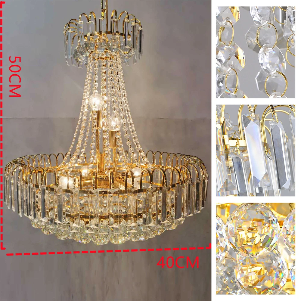Package included: 1 x K9 Crystal Chandelier Specifications: Body Material: Stainless steel and K9 Clear Crystal Style: Modern/Contemporary Size: 40*50CM(D*H)Requires 6pcs E12 Light bulbs(Bulbs not included) Type: Chandelier Color: Gold Diameter: 40cm/ 15.7inch Height: 50cm/19.7inch Voltage: 110V (US) Suggest space size: 18-30㎡ Bulb Type: E12 bulbs(NOT include the E12 bulbs) Applicable space: living room dining room bedroom small meeting room office shop Warm Tips: 1)Suggest install the light fixture by a professional electrician. 2)If you receive unqualified or damaged products, please contact us timely and we will handle them immediately. We are committed to provide best service for every customer. K9 Elegant Crystal Chandelier Modern Ceiling Light Lamp Pendant Fixture Lighting Description Package Included: 1 X K9 Crystal Chandelier Specifications: Body Material: Stainless Steel and K9 Clear Crystal Style: Modern/Contemporary Size: 40*50cm(D*H)Requires 6pcs E12 Light Bulbs(Bulbs Not Included) Type: Chandelier Color: Gold Diameter: 40cm/ 15.7inch Height: 50cm/19.7inch Voltage: 110v (Us) Suggest Space Size: 18-30㎡ Bulb Type: E12 Bulbs(Not Include the E12 Bulbs) Applicable Space: Living Room Dining Room Bedroom Small Meeting Room Office Shop Warm Tips: 1)Suggest Install the Light Fixture by a Professional Electrician. 2)If You Receive Unqualified or Damaged Products, Please Contact Us Timely and We Will Handle Them Immediately. We Are Committed to Provide Best Service for Every Customer. Payment Delivery details Terms of sales About us Contact us Payment We accept ebay payment 。 Fees such as import duties, taxes are not included in the item price or shipping costs. These charges are the buyer's responsibility. Delivery details Shipping: 2-9 working days to: USA Terms of sales We maintain high standards of excellence and strive for hundred percent customer satisfaction. Feedback is very important to us. We hope that you contact us immediately before you give neutral or negative feedback, so that we can address your concerns. It is impossible to address issues if we do not know about them! About us Your satis faction is our ultimate goal. We work hard to earn your trust and future business. Our certified technicians have tested each item before shipping. The unit comes with 1 year limited warranty on all manufacturing defects. a) If you receive a defective item, you may return it or ask for a discount. Please contact us within 14 days after you receive the package. b) What you returned must be intact and in its original packaging as re? u. Customer is responsible for shipping costs of the returned item. c) We will cover the cost of shipping back t with the shipping rate indicated in the registration page. We will send you a new unit or refund the full payment you paid. Thank you. Contact us Business Hour Business Hour: Monday To Friday: 8:30 AM to 5:00 PM (Beijing China time) Due to time zones, our reply to your questions may not be immediately. But within above working time, we will reply your email within 24 hours. If it's non-workdays, please kindly be patient and wait till Monday. Please contact us with ebay message. Please feel free to contact us if you have any questions. Monday To Friday: 8:30 AM to 5:00 PM (Beijing China time) Due to time zones, our reply to your questions may not be immediately. But within above working time, we will reply your email within 24 hours. If it's non-workdays, please kindly be patient and wait till Monday. Please contact us with ebay message. Please feel free to contact us if you have any questions. On Nov 6, 2024 at 22:07:51 PST, seller added the following information: