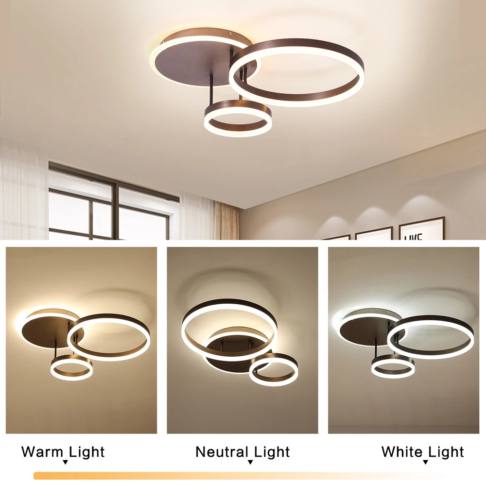 Modern Ceiling Light LED 3 Round Ceiling Lights Flush Mount Ceiling Lamp Warm White 3000K-6500K Ceiling Lighting for Kitchen Bedroom Hallway Entry Dining Room ◆ Geometric & creative design: The ceiling lamp is attached to a cuboid base on the ceiling and consists of three offset, long ellipses that overlap and run parallel to each other, which ensures that a large area is illuminated. ◆ Dimmable: The brightness can be continuously adjusted via the remote control and the color temperature can also be set from cold white to warm white. In this way, the brightness and the color temperature can be better adapted to your wishes and you can also create the mood, for example, by reducing the brightness. ◆ High quality material: The lampshade made of high quality aluminum and silica gel has high l Modern LED Ceiling Light Chandelier Rings Home Living Room Lamp Fixture Dimmable Modern Ceiling Light LED 3 Round Ceiling Lights Flush Mount Ceiling Lamp Warm White 3000K-6500K for Kitchen Bedroom Hallway Entry Dining Room Description: ◆ Geometric & creative design: The ceiling lamp is attached to a cuboid base on the ceiling and consists of three offset, long ellipses that overlap and run parallel to each other, which ensures that a large area is illuminated. ◆ Dimmable: The brightness can be continuously adjusted via the remote control and the color temperature can also be set from cold white to warm white . In this way, the brightness and the color temperature can be better adapted to your wishes and you can also create the mood, for example, by reducing the brightness. ◆ High quality material: The lampshade made of high quality aluminum and silica gel has high light transmittance. The luminosity of the LEDs is particularly bright so that you can experience good illumination on the table surface. ◆ Soft light--- high quality, long life, easy to install, bright and soft lighting, no radio frequency interference, no noise, no flicker, can protect your eyes and brain. ◆ Suitable for residential or commercial use -perfect ceiling lamp for living room, dining room, children's room, kitchen, office, coffee shop, dining room, dressing room, shop, etc. Recommended room adaptation: 20-35㎡ Product parameter : Power: 112W. Lumen: approx. 5600lm. Color temperature: 3000K - 6500K. Light source type: LED. Voltage: 110v-120v. Dimmable: yes. Remote control : yes. Suggestion: - We recommend installing by professionals -When installing and cleaning light, youmust cut off the power supply. ✨ 1. For a safe and secure installation, please ensure that the electrical box to which this fixture will be mounted is properly attached to a structural member of the building. ✨ 2. All wires are connected. When unpacking, be careful not to pull with wires as a bad connection may result. ✨ 3. Do not connect electricity until your fixture is fully assembled. ✨ 4. To reduce the risk of fire, electrical shock, or personal injury, always turn off and unplug fixture and allow it to cool prior to replacing light bulb. ✨ 5. Do not touch bulb when fixture is turned on or look directly at lit bulb. Keep flammable materials away from lit bulb. Payment Delivery details Terms of sales About us Contact us Payment We accept ebay payment 。 Fees such as import duties, taxes are not included in the item price or shipping costs. These charges are the buyer's responsibility. Delivery details Shipping: 2-9 working days to: USA Terms of sales We maintain high standards of excellence and strive for hundred percent customer satisfaction. Feedback is very important to us. We hope that you contact us immediately before you give neutral or negative feedback, so that we can address your concerns. It is impossible to address issues if we do not know about them! About us Your satis faction is our ultimate goal. We work hard to earn your trust and future business. Our certified technicians have tested each item before shipping. The unit comes with 1 year limited warranty on all manufacturing defects. a) If you receive a defective item, you may return it or ask for a discount. Please contact us within 14 days after you receive the package. b) What you returned must be intact and in its original packaging as re? u. Customer is responsible for shipping costs of the returned item. c) We will cover the cost of shipping back t with the shipping rate indicated in the registration page. We will send you a new unit or refund the full payment you paid. Thank you. Contact us Business Hour Business Hour: Monday To Friday: 8:30 AM to 5:00 PM (Beijing China time) Due to time zones, our reply to your questions may not be immediately. But within above working time, we will reply your email within 24 hours. If it's non-workdays, please kindly be patient and wait till Monday. Please contact us with ebay message. Please feel free to contact us if you have any questions. Monday To Friday: 8:30 AM to 5:00 PM (Beijing China time) Due to time zones, our reply to your questions may not be immediately. But within above working time, we will reply your email within 24 hours. If it's non-workdays, please kindly be patient and wait till Monday. Please contact us with ebay message. Please feel free to contact us if you have any questions.
