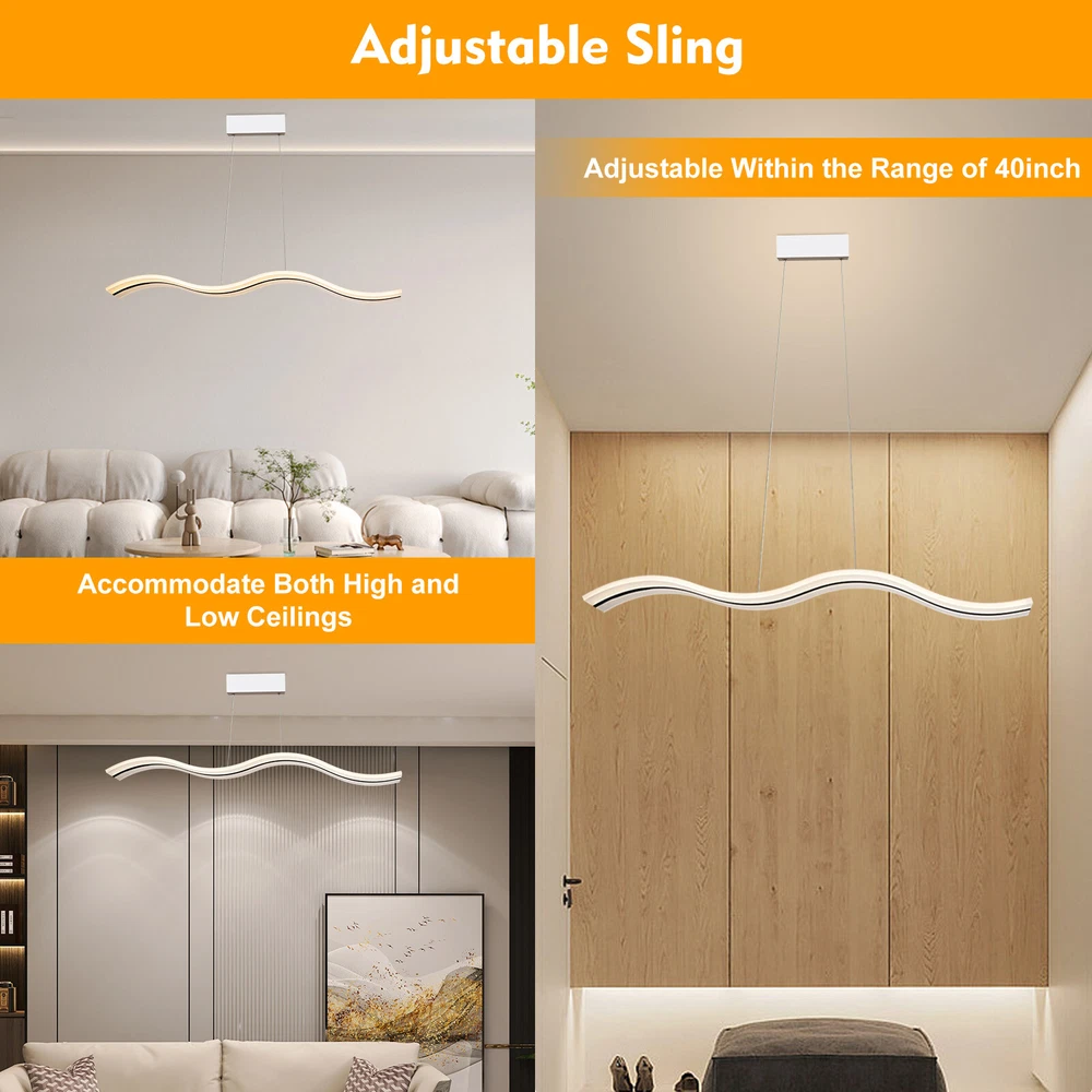 Modern Acrylic LED Chandelier Linear Belt Wavy Drop Pendant Lamp Light Fixtures Specification: Material: Advanced Aluminum Casting and Acrylic Length: 1000mm(39.37 inch) Width: 120mm(4.72 inch) Wire lenght: 1200mm(47.24 inch/ adjustable) Dimmable: (come with remote control) Light source: LED Wattage: 38W Suitable Voltage: 100V-240V Base size: 26cm*5cm*4cm Installation Type: Pendant light Shape: Wave Area: 8-10㎡ Pattern: Stepless Dimming-With remote control (3000K-6500K) Size:100X12cm/39.37"X4.72"(appr.) Description 1. Application : Perfectly suitable for Dining Room, Bedroom, Living Room , Kids Room, Hallway, Hotel,Restaurant,and Company Reception and so on .It is bright,safe and dimmable .High standard High-end ,luxury, it will make your room more elegant. 2. Superior Design : Mod Modern Pendant Lamp LED Linear Wave Acrylic Chandelier Ceiling Light Dimmable Modern Acrylic LED Chandelier Linear Belt Wavy Drop Pendant Lamp Light Fixtures Specification: Material: Advanced Aluminum Casting and Acrylic Length: 1000mm(39.37 inch) Width: 120mm(4.72 inch) Wire lenght: 1200mm(47.24 inch/ adjustable) Dimmable: (come with remote control) Light source: LED Wattage: 38W Suitable Voltage: 100V-240V Base size: 26cm*5cm*4cm Installation Type: Pendant light Shape: Wave Area: 8-10㎡ Pattern: Stepless Dimming-With remote control (3000K-6500K) Size:100X12cm/39.37"X4.72"(appr.) Description 1. Application : Perfectly suitable for Dining Room, Bedroom, Living Room , Kids Room, Hallway, Hotel,Restaurant,and Company Reception and so on .It is bright,safe and dimmable .High standard High-end ,luxury, it will make your room more elegant. 2. Superior Design : Modern luxurious Wave design ,Like the ocean waves, brings more brilliance to your life,highlights your taste.It is dimmable and has remote control .You can dim the pendant light freely , 3000K-6500K, Warm White , Neutral White , Cool White , you can choose the light temperature whatever you want , Easy to enhance the atmosphere of the room. 3. High Quality Material: Made of Advanced Aluminum Casting and Acrylic . Robust, Secure, Good vibration resistance and Perfect Finishing Color.The sling is made of sturdy steel wire, which is firm, weighed, good vibration resistance and won't break.Acrylic is light transmissive and does not change color. 4. Easy to installation: Suitable for US junction box standard.Just connect to the reserved wire directly and fully compatible to 100v-240v. No switch or cord on the light. 5. Energy Saving And Ultra Bright Chips : More durable and refraction effect is good. 36W Dimmable Payment Delivery details Terms of sales About us Contact us Payment We accept ebay payment 。 Fees such as import duties, taxes are not included in the item price or shipping costs. These charges are the buyer's responsibility. Delivery details Shipping: 2-9 working days to: USA Terms of sales We maintain high standards of excellence and strive for hundred percent customer satisfaction. Feedback is very important to us. We hope that you contact us immediately before you give neutral or negative feedback, so that we can address your concerns. It is impossible to address issues if we do not know about them! About us Your satis faction is our ultimate goal. We work hard to earn your trust and future business. Our certified technicians have tested each item before shipping. The unit comes with 1 year limited warranty on all manufacturing defects. a) If you receive a defective item, you may return it or ask for a discount. Please contact us within 14 days after you receive the package. b) What you returned must be intact and in its original packaging as re? u. Customer is responsible for shipping costs of the returned item. c) We will cover the cost of shipping back t with the shipping rate indicated in the registration page. We will send you a new unit or refund the full payment you paid. Thank you. Contact us Business Hour Business Hour: Monday To Friday: 8:30 AM to 5:00 PM (Beijing China time) Due to time zones, our reply to your questions may not be immediately. But within above working time, we will reply your email within 24 hours. If it's non-workdays, please kindly be patient and wait till Monday. Please contact us with ebay message. Please feel free to contact us if you have any questions. Monday To Friday: 8:30 AM to 5:00 PM (Beijing China time) Due to time zones, our reply to your questions may not be immediately. But within above working time, we will reply your email within 24 hours. If it's non-workdays, please kindly be patient and wait till Monday. Please contact us with ebay message. Please feel free to contact us if you have any questions. On Nov 12, 2024 at 03:18:15 PST, seller added the following information: