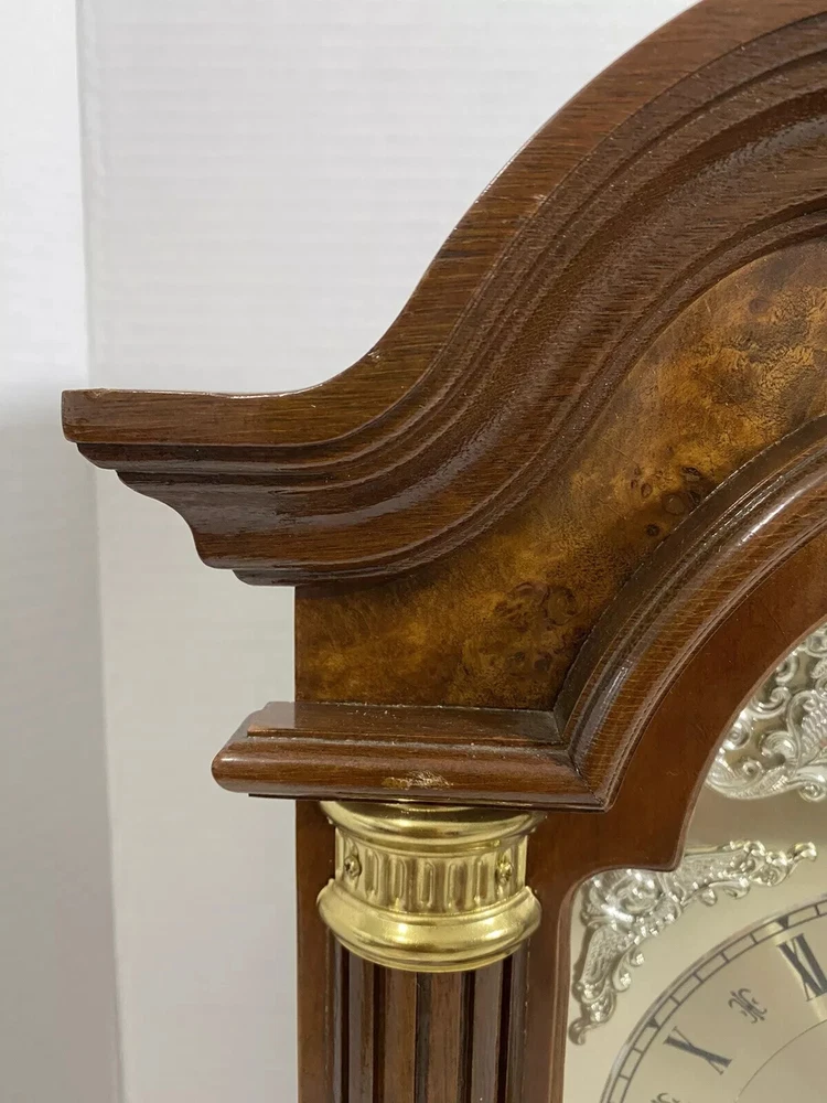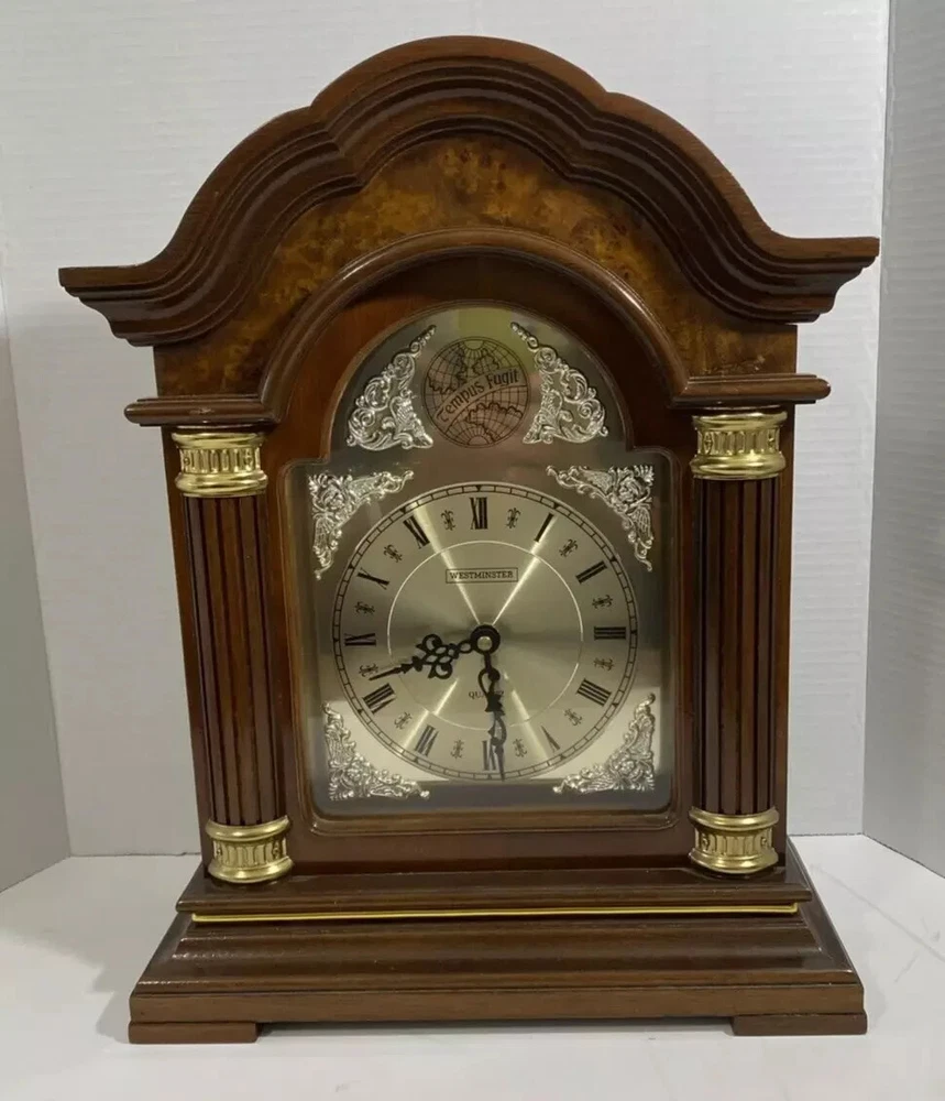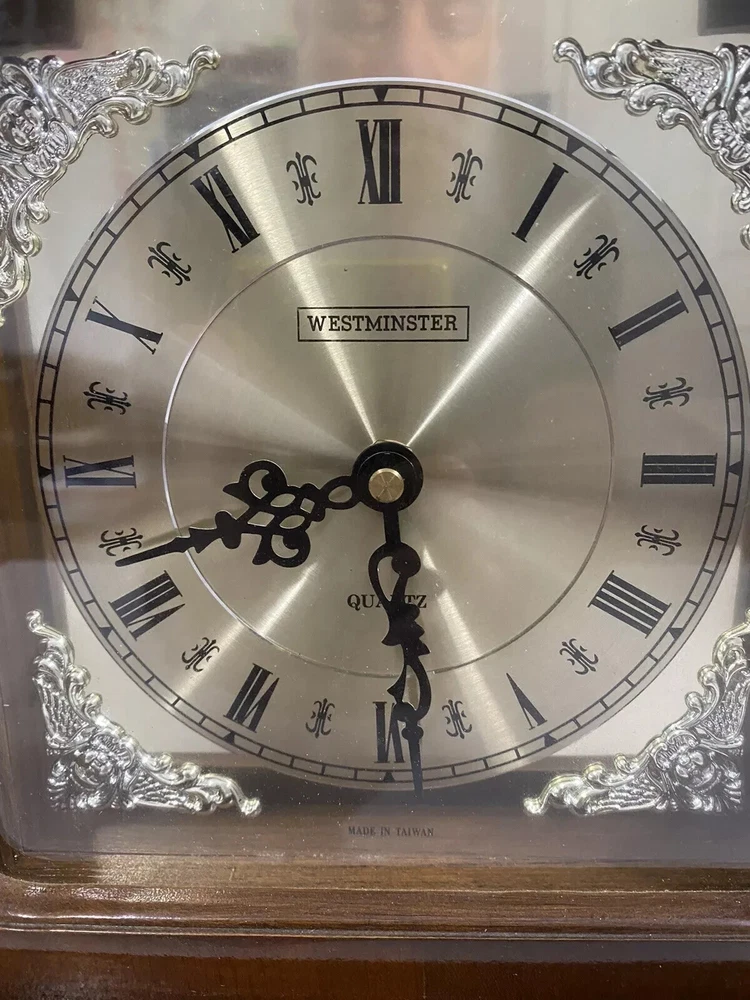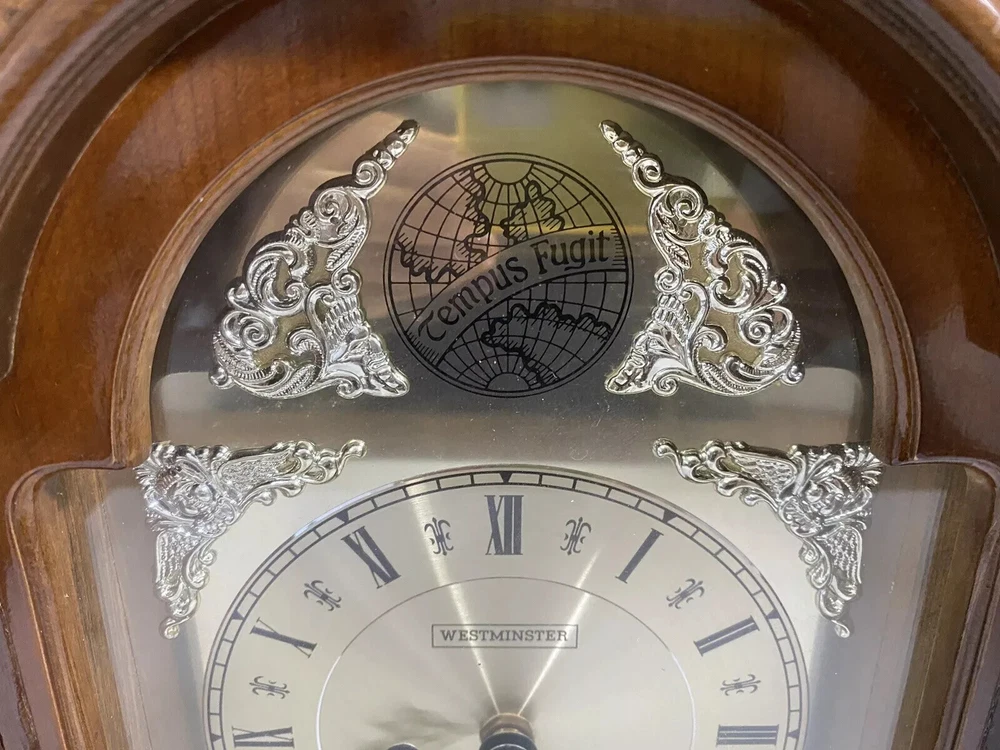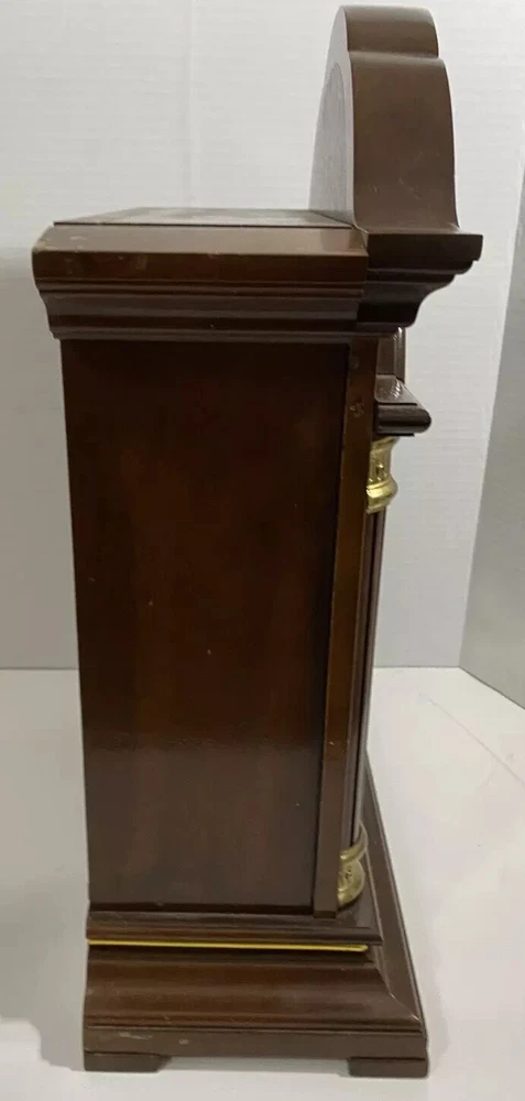 This Modern Westminster Chime Quartz Battery Colonial Bracket Style clock is a beautiful addition to any room. With its rectangular shape and brown color, it is made of wood, brass, and glass materials. The clock features an analog display type with Roman numerals and a quartz movement powered by battery. It also has a Westminster chime sequence and is designed with a colonial style bracket. This clock is 14 inches in length, 18 inches in height, and 8 inches in width, with a weight of 8 lbs. It is suitable for boys and girls and can be placed in any room of your home.