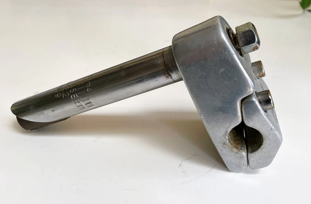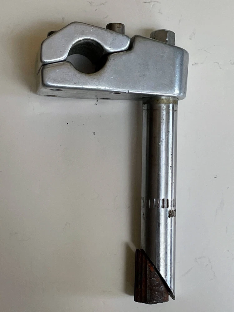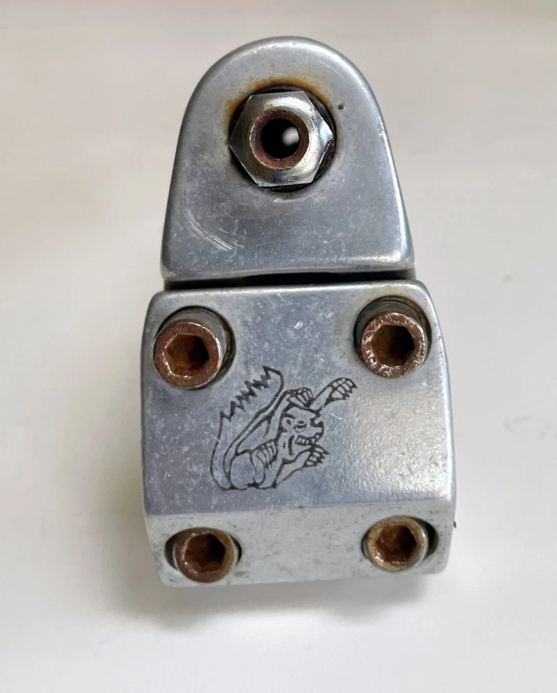 Old-school Mongoose "Maurice" BMX stem, 22.2mm quill diameter for 1 inch steerer tube. Nice Mongoose logo.