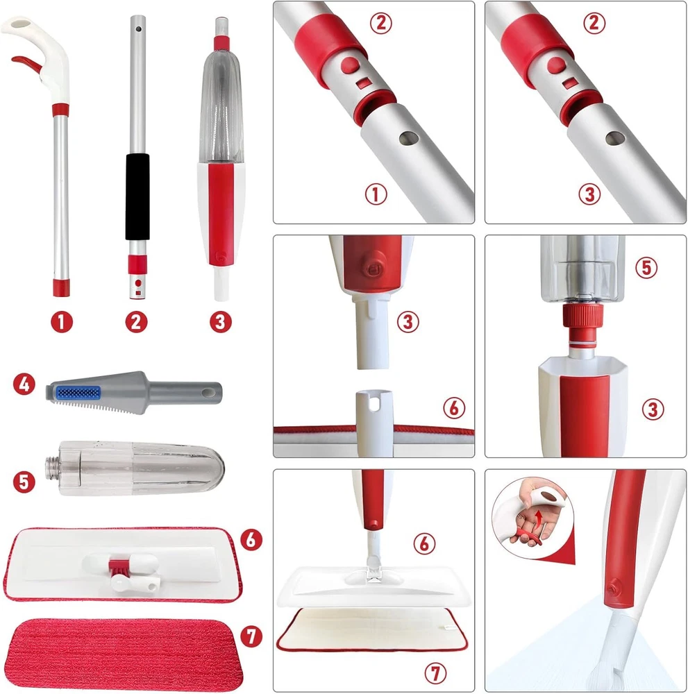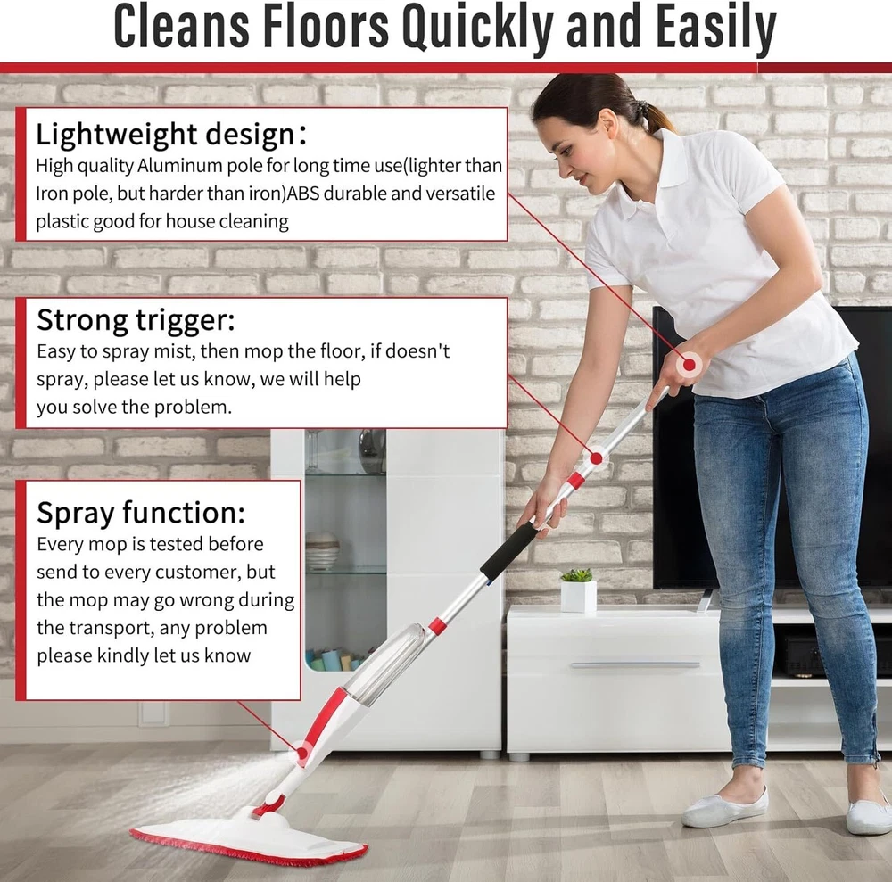 Mops for Floor Cleaning Wet Spray Mop with 14 oz Refillable Bottle 01-red Product Details Head Material: Microfiber Number of Items: 2 Manufacturer: Panda Grip Product Dimensions: 15.94 x 5.7 x 50 inches Item Weight: 1.7 pounds Country of Origin: China Item model number: ZQ-PSTBRED02-US02 Volume: 400 Milliliters Perfume: Lemon Batteries required: No Brand: Panda Grip Color: 01-red Mop Product Dimensions: 15.94"L x 5.7"W x 50"H Surface Recommendation: Floor Handle Material: Aluminum ❤EASY TO USE: No batteries need, just fill the bottle, pull trigger to spray mist, then mop the floor. Works well even when the pad is dry. Rotating head can easily reach any area. Easily cleans dust from under your sofa, table, bed or any other tight spot. ❤NO WATERMARKS AFTER MOPPING: Spray mop head has excellent absorption capacity, leaving no streaks or puddles after use. Works well on any flooring. ❤LIGHTWEIGHT AND CONVENIENT: Lightweight design with 50 inch long handle make mopping easier. So easy. No more need for heavy, messy buckets or cumbersome mops, a child can do it! ❤STURDY: Spray mop has a sturdy pole, with high quality design and structure. Mophead is made of impact-resistant plastic. Highly quality aluminum alloy pole for long-term use. Attention:If the packaging of the product is damaged during transportation, resulting in defects, please contact our customer service to resend a new package to you.
