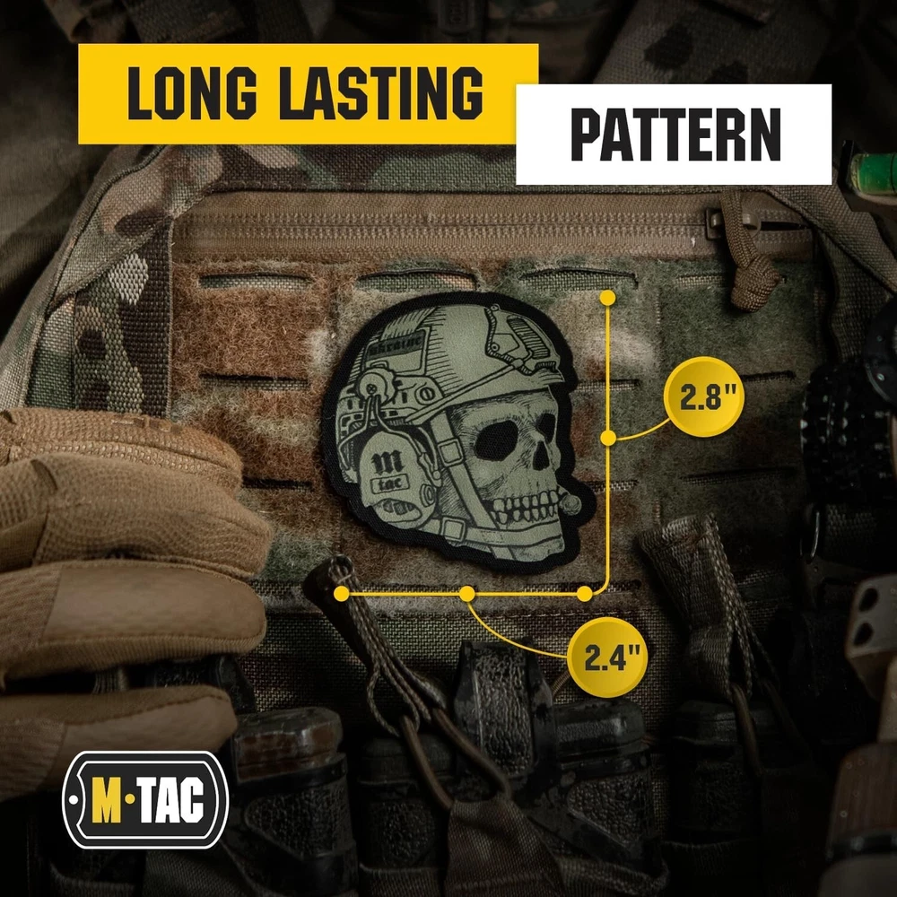 Tactical Operator Skull Patches for Vest, Backpacks, Hats - Tactical Military Patch with Hook Fastener Backing (Dark Olive) Multipurpose: Back side of patch made with hook fasteners makes it perfect hat or sleeve patch. Also great for all tactical gear - vest, backpack, bag, hat, cap, jacket and as airsoft patch Durable Materials: This military patch made of Oxford material Technology: This army morale badge made using innovative technology. Durable - will last long, color don’t fade and it is easy to clean Dimensions: product dimensions are 2.4" x 2.75" Stand out: Pick your own tactical morale patch and give individuality to any kind of equipment or uniform