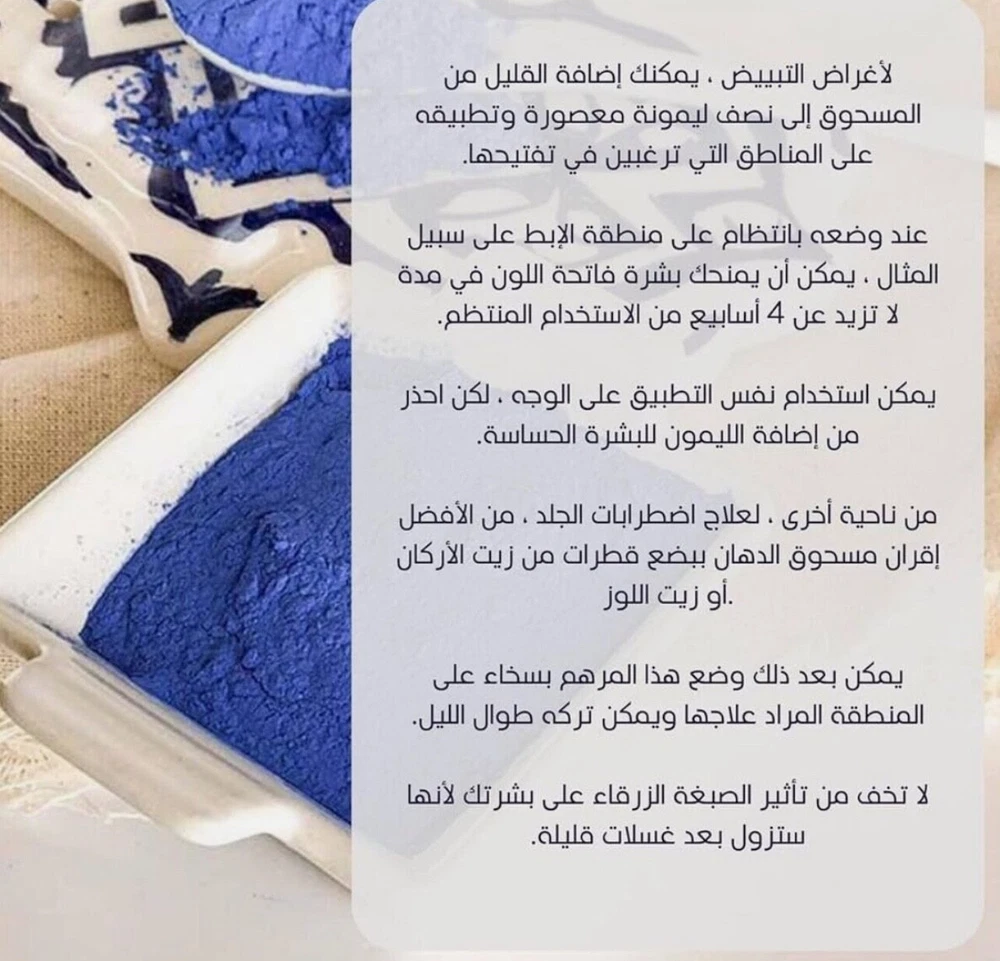 Moroccan Blue Nila Natural Whitening for Skin& Face 50gm نيلة مغربية زرقاء.