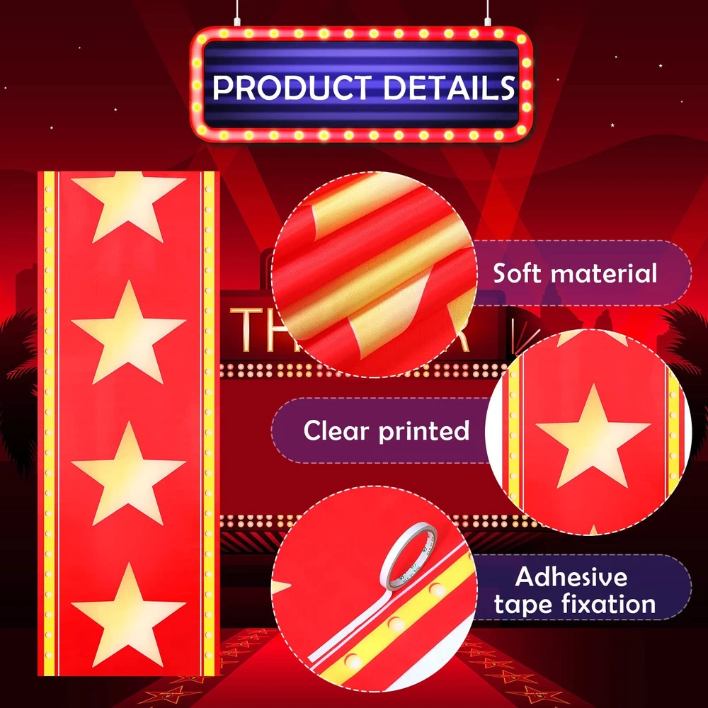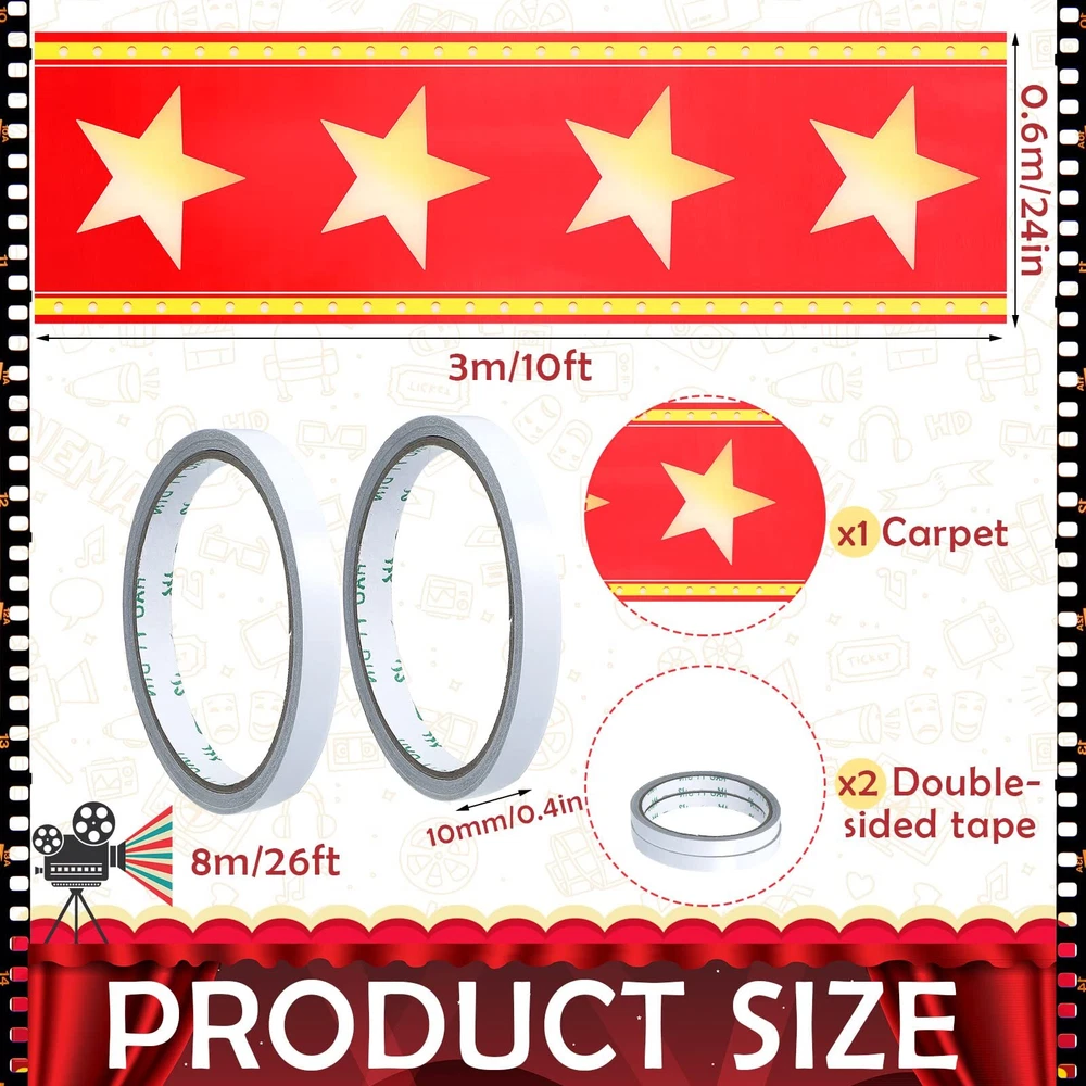 Features: Using tips: For better stable effect and reducing curl, you can use the tape to fix the movie party red carpet, bringing you a lot of convenience. Simple to : If the outdoor carpet runner is not in use, you can roll it up and place it to somewhere, not occupying much space, handy and portable. Specifications: Main material: polyester Main color: red plus gold Size: Carpet: around 10 feet in length, 24 inch in width Tape: around 26 feet in length, 0.4 inch in width Package includes: 1 x LED event carpet runner 2 x Carpet tapes Notes: Manual measurement, please allow slight errors on size. The color may exist a slight difference due to different screen displays. What's Included in the Package: you will receive 1 roll of LED event carpet runner, measuring around 10 feet in length, 24 inches in width, with 2 rolls of carpet tapes, which can help you fix the carpet Convenient to Use: the movie party red carpet can be applied to various floor types, such as wooden floors, ceramic floors, glass floors and other flat surfaces, fitting indoor and outdoor use Glittering and Charming: the red carpet runner for party is printed with star patterns, appealing and eye catching, and the brim parts are decorated with LED, bling in the night, shiny your beauty, the ideal party accessory and photography tool Movie Theme Design: the LED roll out red carpet is a beautiful decoration for various occasions, such as movie theme nights, birthday parties, weddings, carnivals, etc., which can create a cheerful atmosphere; Just stand in the carpet, and you will become the shiny star Considerate Material Adopted: the LED red carpet runner for party is mainly made of polyester material, no bad smell, soft and skin friendly, easy to clean and reusable, serving you for a long time
