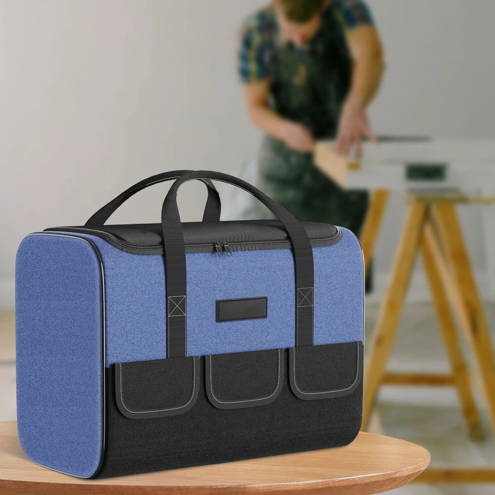 Product Description Bout this item: 👷♂️ Keep Your Tools Organised: with our tool bag designed for DIY enthusiasts and craftsmen. This tool bag is perfect for storing and organising your tools and materials. 👷♂️ High-quality Materials And Structure: Our tool bag is made of 5 layers of 1680D Oxford fabric, providing excellent durability and stability. Waterproof, finely stitched, and able to withstand heavy use. 👷♂️ Large Space and Multiple Pockets: Our tool bag features 1 strong inner pocket and 5 outer pockets, providing ample space to store various tools and materials. It is robust and versatile. 👷♂️ Multifunctiona Tool Bag : Ideal for DIY enthusiasts and craftsmen, but also for electricians or plumbers. It offers a practical solution for storing and organizing tools effectively. Specification: Material:Polyester Color :Blue Size: 16.93x9.25x11.8 inch Water Resistance Level:Water Resistant Number of Compartments:5 Included Components: 1 Tool Bag powered by