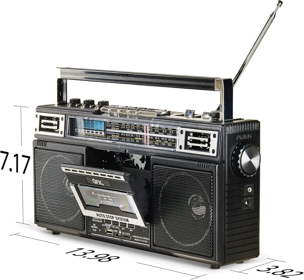 Multifunctional Retro Bluetooth Boombox with Cassette Player and Speaker System ‹ › ‹ › ‹ › ‹ › ‹ › ‹ › ‹ › ‹ › ‹ › ‹ › ‹ › ‹ › Multifunctional Retro Bluetooth Boombox with Cassette Player Relive the golden era of the 1980s with our exquisite Retro Bluetooth Boombox, a masterpiece that seamlessly combines nostalgic charm with modern technology. Key Features: 💽 4-Band Radio: Tune into AM, FM, SW1, and SW2 stations for a world of music at your fingertips. 🔊 Bluetooth Capability: Effortlessly connect your devices via Bluetooth to play music from your favorite streaming apps. 📦 USB/SD Music Playback: Enjoy convenient playback from USB drives and SD cards. 🔋 Built-in Rechargeable Battery: Keep the music going without interruption, wherever you go. 👜 Portable Design: With an attached swivel handle, take your boombox to birthday parties, family gatherings, or any entertainment event! 🎶 Cassette Player/Recorder: Dive back into nostalgia - listen to your favorite cassette tracks and create custom mixtapes! 💻 Direct Connect Options: Enjoy music with ease through direct connectivity features. Experience the Benefits: ✨ Versatile Entertainment: Perfect for any occasion, from casual hangouts to lively celebrations. 📻 Complete Sound Experience: Dual 3” stereo speakers deliver rich and immersive sound quality. 🎵 Nostalgic Pleasure: Relive the joy of building your cassette collection and share your musical journey. 💾 Archive Your Favorites: Convert cassette tracks directly to MP3 on USB or SD Card storage. 💌 Customer Satisfaction Guaranteed: Should you have any queries, reach out to our support team for immediate assistance. Why Choose Our Retro Boombox? Embrace the beauty of nostalgia without sacrificing modern conveniences! Our Multifunctional Retro Bluetooth Boombox not only delivers stunning audio quality but also allows you to enjoy music on your terms. Whether you yearn for the days of cassette tapes or prefer streaming from your device, this boombox caters to all your musical desires. Order now and transform every occasion into a joyous celebration of sound! Shipping Free & Fast Shipping - We offer free shipping to most of the USA with a normal delivery time of 3-7 days. However, due to the current situation, additional delivery time (up to 3 weeks) may be required for some items. Alternative Carriers - We may use alternative carriers (e.g. USPS, FedEx, UPS, etc.) to ensure your package arrives safely and on time. Due to the use of multiple carriers, we are unable to provide a tracking number automatically. Handling Time - Orders are processed and shipped within 1-2 business days of receiving cleared payment. Shipping Restrictions - Shipping to Alaska, Hawaii, Puerto Rico, Guam, and other US territories may incur shipping charges or delivery restrictions. Please contact us before ordering, or your order can be refunded/cancelled. State Restrictions - There may be restrictions based on your state of purchase. For example, certain items may not be shipped to California due to state regulations. Contact for Tracking Updates - If you require tracking updates or have any concerns about the delivery of your order, please feel free to contact us, and we will be happy to assist you. Return 30-Day Hassle-Free Returns - We want you to be completely satisfied with your purchase. If you are not, you can return the item within 30 days of receiving it for a full refund or exchange. Easy Return Process - To start a return, simply contact us and we will provide you with a prepaid return shipping label and detailed instructions. Restocking Fee - There are no restocking fees for returns. However, the buyer is responsible for return shipping costs if the return is not due to a seller's error. Refund Processing Time - Refunds will be processed within 5 business days of receiving the returned item in its original condition. Payment We accept all major credit cards, PayPal, and Apple Pay for your convenience. Your payment information is secure and encrypted to ensure a safe and seamless transaction. Please complete your payment within 3 days of purchase to avoid any delays in shipping. Feedback Your feedback is extremely important to us. We strive to provide the best products and customer service possible. If you are satisfied with your purchase, please take a moment to leave us a positive review. If you have any concerns or issues with your order, please contact us before leaving negative feedback. We are committed to resolving any problems and ensuring your satisfaction. Contact Us If you have any questions or concerns, please feel free to reach out to our customer support team. You can contact us through the eBay messaging system. We are available Monday to Friday, 9:00 am to 5:00 pm EST, and we will do our best to respond to your inquiry within 24 hours. Buy it now and enjoy a pleasant shopping experience! UPC: Not Set Unit Quantity: 4 Item Height: Bluetooth Boombox Item Length: Bluetooth Boombox Item Weight: 4 pounds Item Width: Not Set RMS Power: Not Set Year Manufactured: Not Set Connectivity: Bluetooth,USB,SD Features: Bluetooth,Recorder,3-Band Equalizer,Rechargeable Battery Audio Outputs: Stereo L/R RCA,Stereo Compatible Memory Card: USB Brand: Unbranded Model: Bluetooth Boombox Type: Boombox Playable Media Format: Cassette Tape CD Changer Capacity: Not Set Color: Black Band: AM/FM Product Line: Not Set Storage Capacity: Not Set MPN: Not Set Audio Inputs: Not Set Unit Type: lbs Memory Type: Not Included Generation: Not Set Plug Regional Fitment: Not Set Battery Life: Not Set Country/Region of Manufacture: Not Set Manufacturer Warranty: Not Set Surround Sound Formats: Not Set