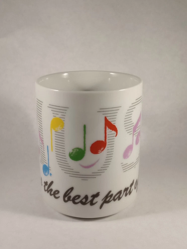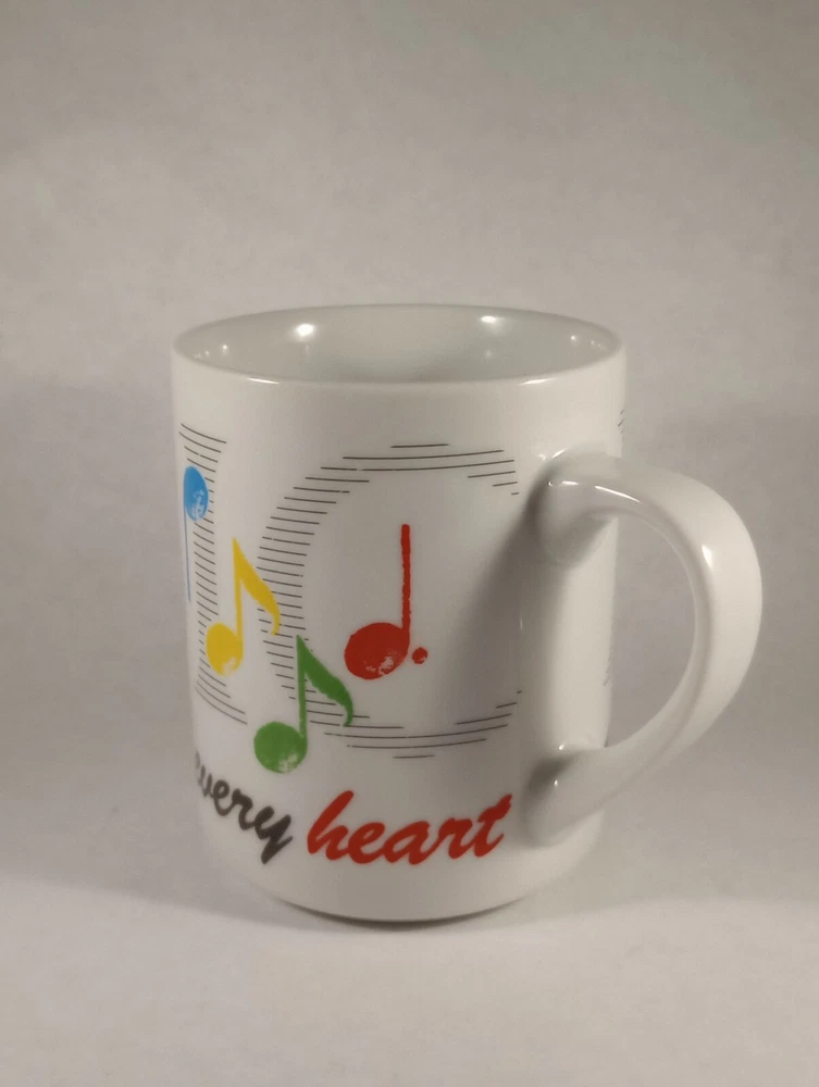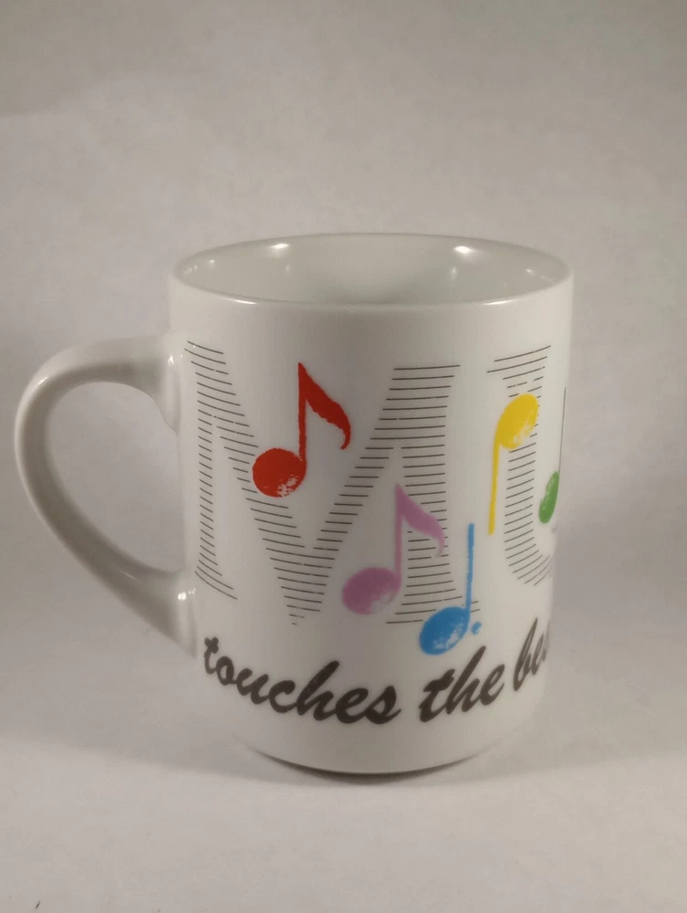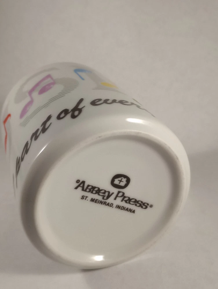 Music Inspirational Coffee Cup by Abbey Press. The text reads "Music is the Best Part of Every Heart". This coffee cup is in great condition with no major defects at all. Great GIFT IDEA for Musician or Music Teacher.