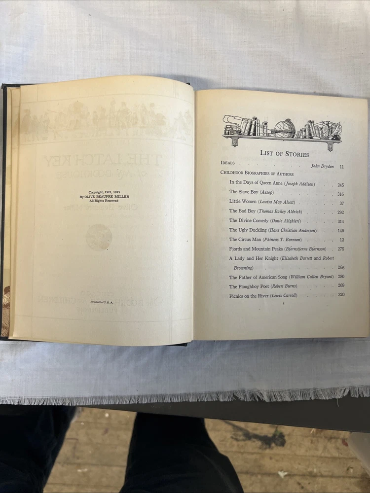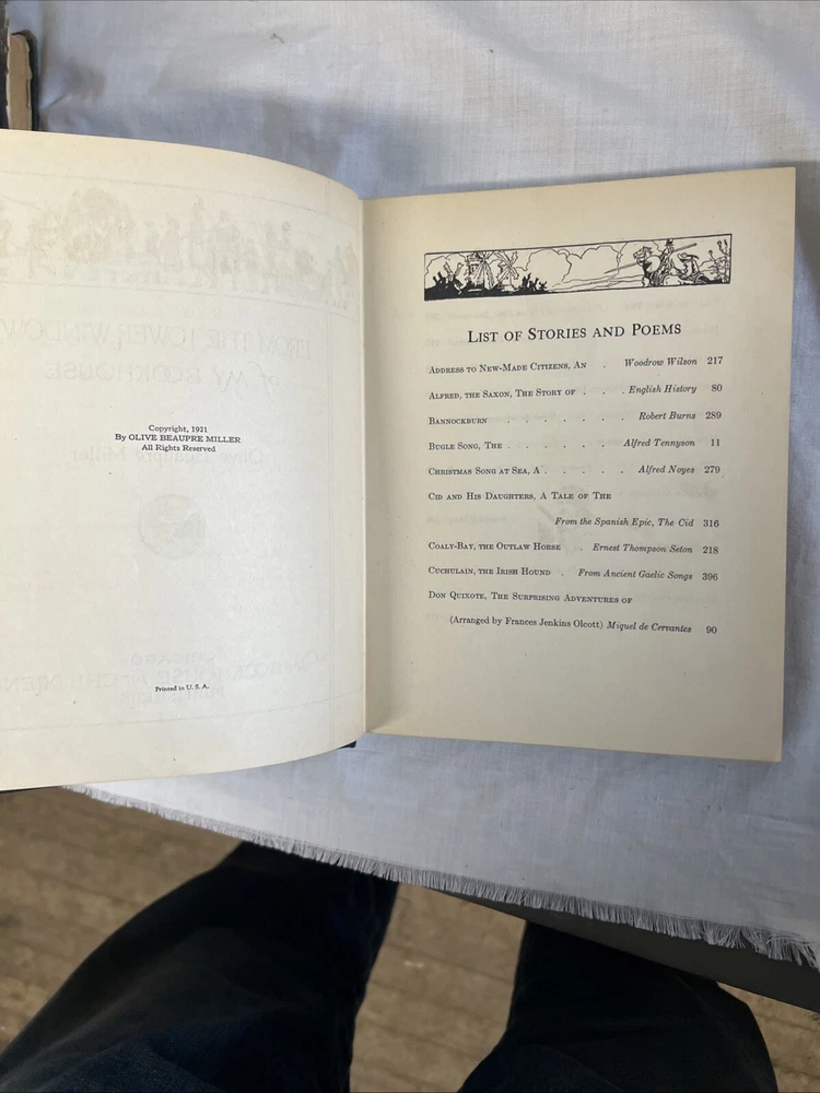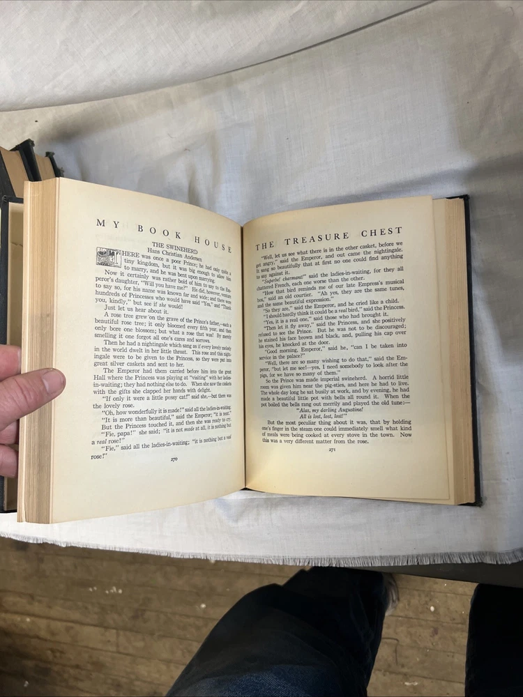 Wonderful complete set of 1st edition My Book House Volumes 1-6 by Olive Beaupre Miller. Published 1920-1921 by The Book House for Children of Chicago, Illinois. The books are in very good antique condition considering the age and the fact that they are children's books, with expected wear to the covers, edges, and spines. The conditions get better as the series goes on with less losses, pages do show foxing/discoloration, page tears from age and turning. Please see all photos. The collection and additional condition includes: (1) In The Nursery . 1920 Break to inner binding, 5-12 are loose, 95, 113, 205 torn and tape, missing pages 13-16. other minor wear (2) Up One Pair of Stairs . 1920, 1925 minor looseness on the outside edge of back cover (3) Through Fairy Halls . 1920 tear on first page (4) The Treasure Chest . 1920 (5) The Tower Window . 1921 (6) The Latch Key. 1921. 1925 See pictures for complete condition details. This item comes from a smokefree home, I accept paypal or you can pay when you pick up an item, any other payment questions please email me. I will combine/discount shipping charges on multiple purchases to help save you money. if you buy multiple items, please wait for me to send you an invoice with the discounted shipping on it. Shipping to Hawaii, Alaska, Puerto Rico, and OTHER COUNTRIES is extra, please email me for international shipping rates, -----------------Insurance is an additional charge, please ask for insurance if you would like it. Insurance needs to be purchased by the customer, in order to have any coverage for shipments lost or damaged by USPS, FedEx, or UPS. I use Fed Ex ground, UPS, and USPS for shipping, please make sure you are able to receive packages via all these carriers. Please make sure to have the address you want this shipped to added as the authorized address on your paypal account. We can only ship to authorized paypal addresses and we do not accept emails to change the shipping address. ----------------- 30 Day money back return policy, if returned due to buyer changed their mind, the buyer will pay for shipping product back and the original shipping. The refund will be processed upon my receipt of the returned item and full purchase price will be refunded. The item must be in the same condition as when purchased. If item needs to be returned due to my error, I will pay for all shipping. any questions... Please Email me before bidding! Thanks for bidding! 46A