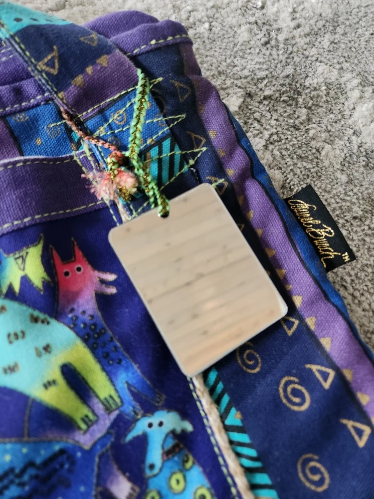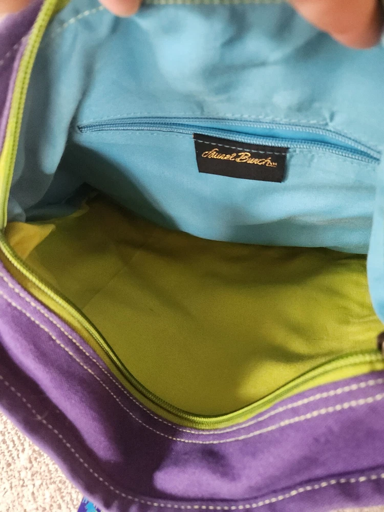 Mythical Dogs Laurel Burch Medium Canvas Purse Tote Bag Handbag Purple Blue. Never used but has been stored for a while