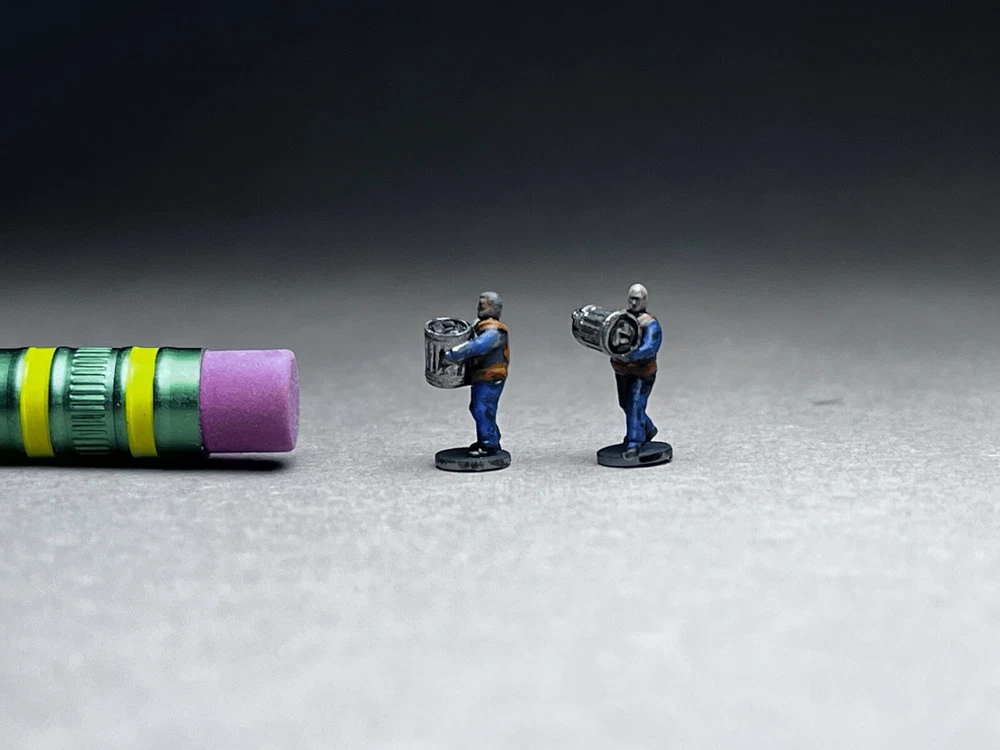 This is NOT a toy and it is NOT appropriate for children. This is a model for adult train enthusiasts, collectors and modellers. Please note this is N Scale (1:160 or about 12mm human figure) model and is slightly larger than my average wargaming models. Ford C600 COE (Cab Over Engine) Garbage Truck. The set includes 2 crew members with integrated bases (great for temporary layouts or if you simply do not wish to glue down figures on your layout or like to rearrange things often) and 5 unique trash cans (as seen in photos). These trucks were very common across wide range of industries. Manufactured from 1957-1990. This is the unsung hero of bygone era! Other figures seen in photos are NOT included. NOTE to train guys - This model was designed specifically to be printed at N scale. The small detail has been beefed up to allow for safe handling and easy painting. What you see in photo is the real model, not high-definition computer rendition that is IMPOSSIBLE to print. When shopping for N scale vehicles (at igMakes or other sellers), always look for photographs of printed models. Unscrupulous sellers will show off high-detail models that simply cannot be reproduced on small N scale print regardless how good printer or resin they use. The big red flag is lack of actual model photos, instead you are presented with gray computer CAD rendition of what model looks like. If a model was not designed for N scale, scaling down will result in small detail dissolving, or if they do print successfully, the fragility will not allow for safe handling or will break during shipment! i.e. an inch diameter antenna on large model shrunk to N scale will be sub-milimeter and will break of the moment you touch it - assuming it survives the shipping igMakes N scale model difference: 1. built from ground up for N scale, all detail will print flawlessly and allow for safe handling 2. I DO NOT hollow my models EVER! You will love the solid hefty chunk of resin feel in your hand! There is ZERO chance of uncured resin pouring out. Beware of "clear resin" scam where sellers claim the purpose was insertion of lights. They are hollowing models to save on resin and result is often raw resin dripping out of the model. 3. Our flawed prints go to trash and are NEVER sold to customers! 4. Our models comes with REMOVED SUPPORTS. Remaining micro supports can be scrubbed off with wooden toothpick. NO MORE WIRE CUTTERS nightmares and broken models!! 5. Our prints are thoroughly washed and ready to be primed and painted 6. I personally printed and painted all models you see in photos - what you see is exactly what you will get UNPAINTED 7. 14 days warranty - not happy with my model for ANY reason, send them back (you cover return shipping) for full refund of purchase price (shipping excluded) 8. Most models are already printed, in-stock and ship same or next day! No more waiting for weeks and wondering if you will ever receive your order. We make NO EXCUSES, we make models instead. 9. 100% NO-BS customer service!! We will work with you! We are a passionate small family business and we value your time and the fact you chose to spend your money on our models! 10. ig (the designer and the store owner) is big tabletop wargamer and N scale train enthusiast (C&O, Virginia, Southern). I know what works and how to make models right! My PROMISE is never to sell anyone inferior junk just in order to make few bucks. Because we make our own models, when there is a problem, we go back to CAD and fix it! One (1) truck included. Included figures are UNPAINTED. NO other figures in photo background are included. If you are interested in painted figures, please contact me for more info. This is an unique in-house design and print. 100% Made in USA! THANK YOU for your consideration! ig