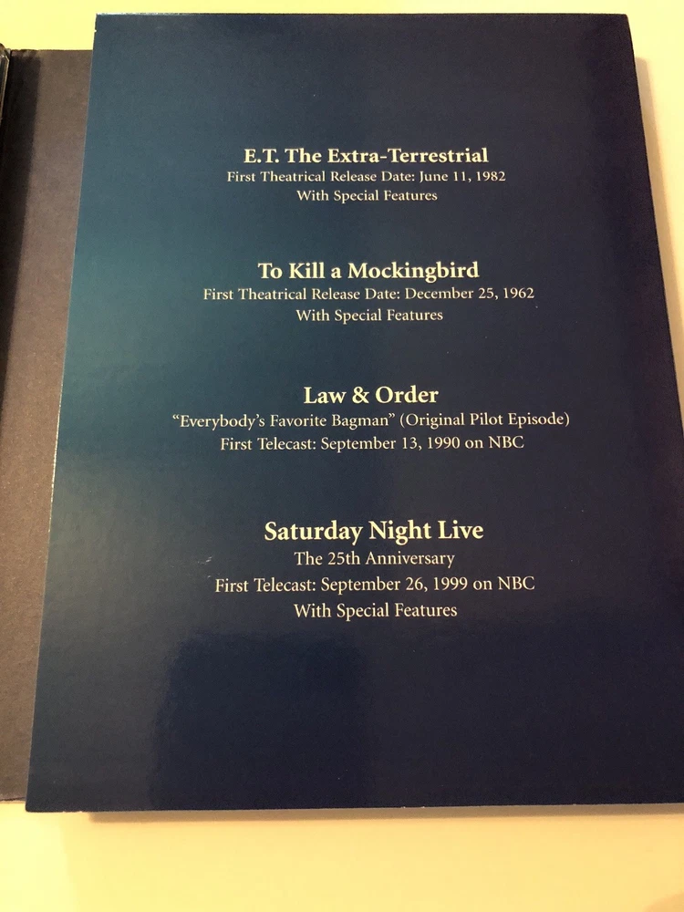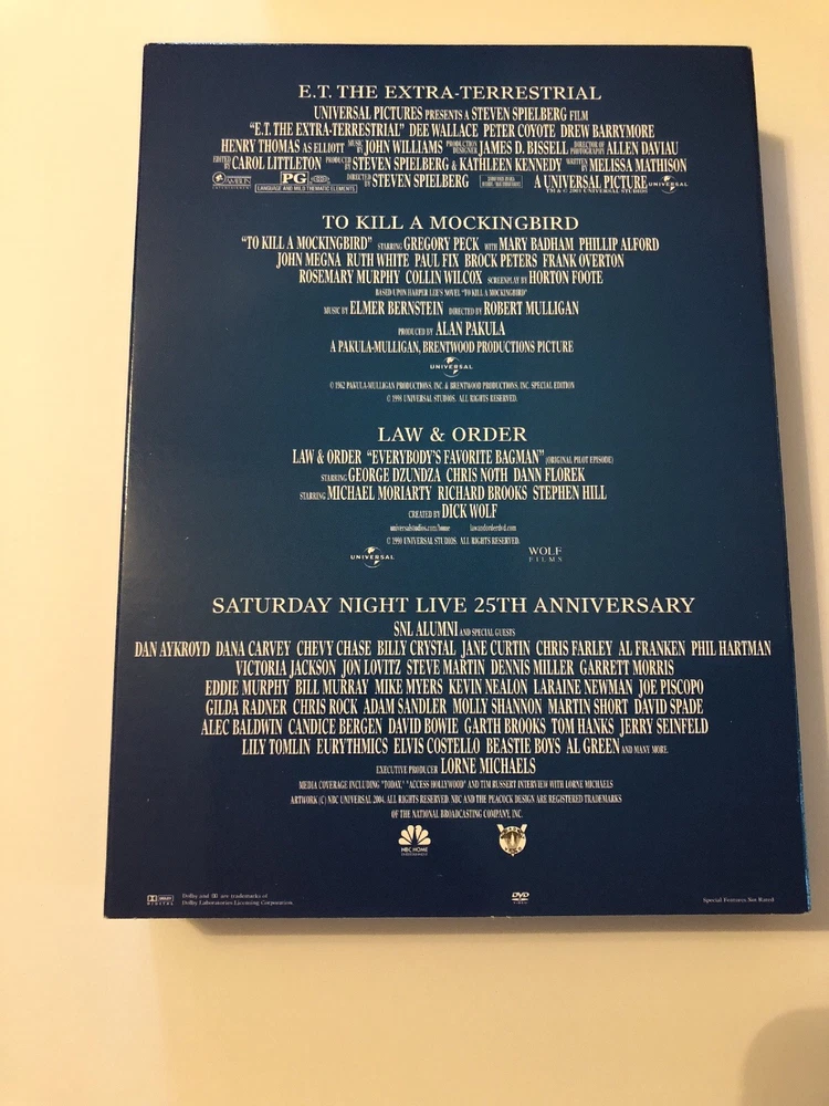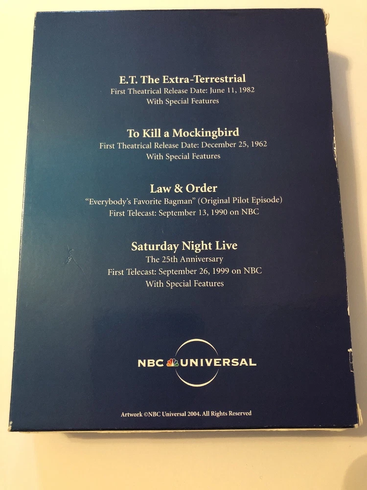 NBC Universal Classics 2004 Commemorative Collection 4 DVD Set ET The Extra-Terrestrial (1982 release) To Kill A Mockingbird (1962 release) Law & Order (1990 first telecast) Saturday Night Live (first telecast 1999)