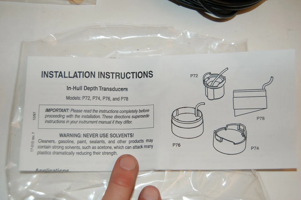 Here is a NEW Airmar P78 In-Hull Depth Transducer Fiberglass Hulls Deadrise Angle of 10-20 Degrees . This depth finder transducer is recommended for high speed boats. Includes installation instructions. Models: P72, P74, P76, P78 Frequency: 120kH