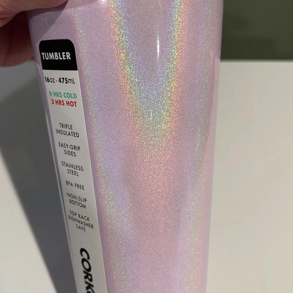 This stylish Corkcicle 16oz tumbler in a gorgeous sparkly lavender finish is both functional and fashionable. Made from durable stainless steel, it’s triple-insulated to keep your beverages cold for up to 9 hours or hot for 3 hours. The easy-grip sides make it comfortable to hold, while the non-slip bottom ensures stability. Perfect for on-the-go or at home, this tumbler is also BPA-free and dishwasher safe (top rack only). Ideal for those who value style and practicality in their drinkware. NEW Corkcicle 16oz triple insulated tumbler sparkling lavender pink color nwt Triple insulated Easy grip sides Stainless steel Bpa free Non slip bottom Top rack dishwasher safe