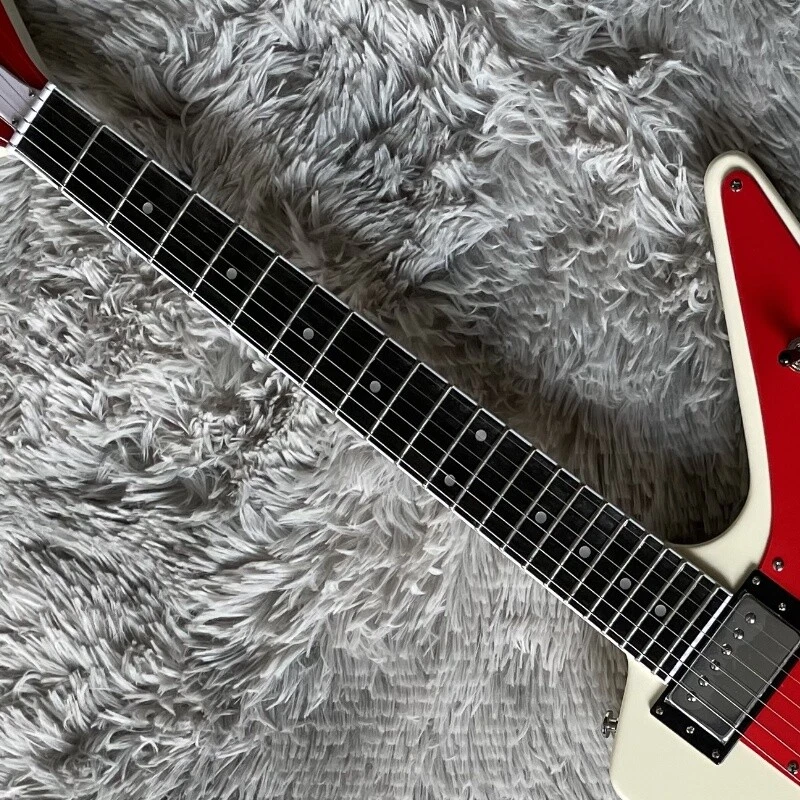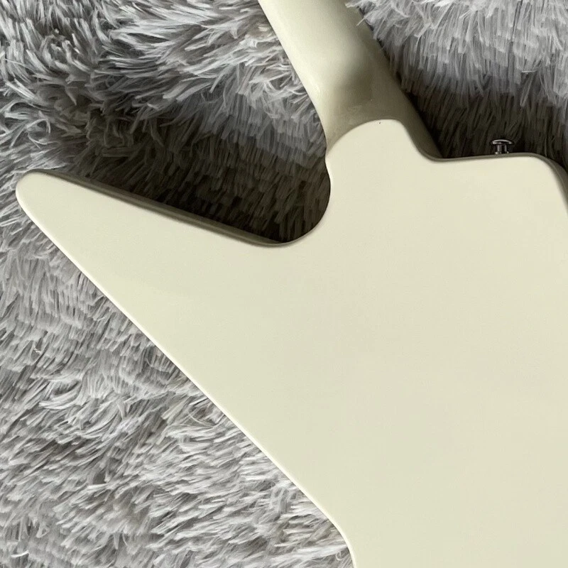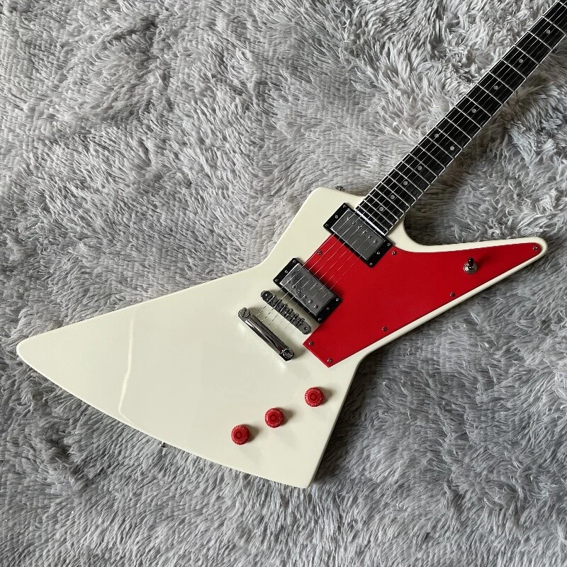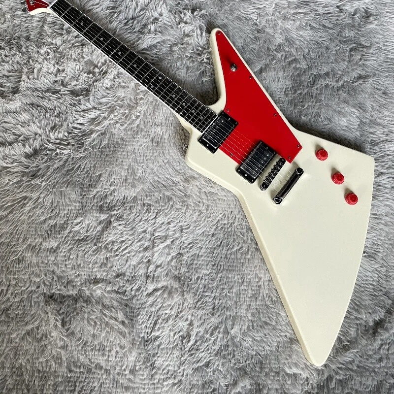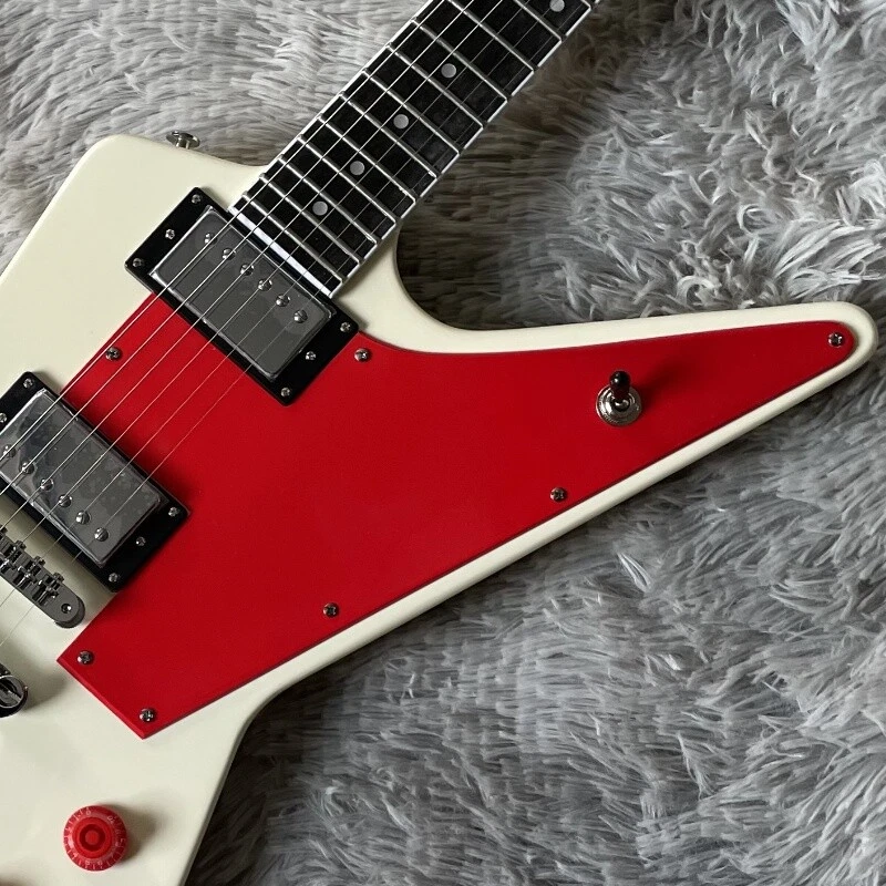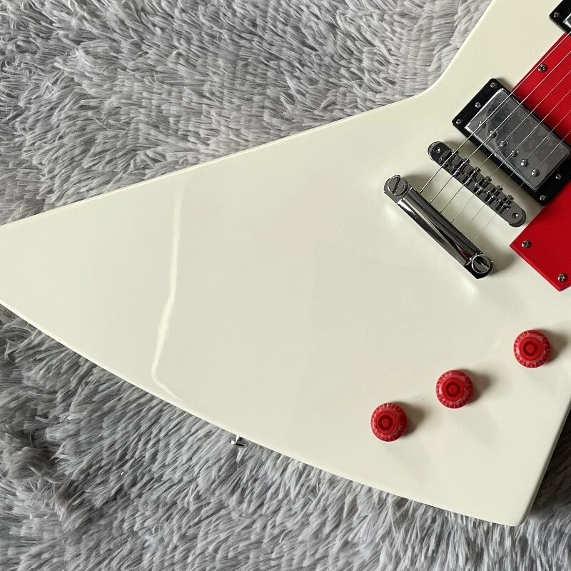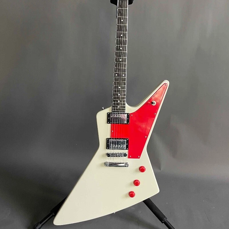 NEW Cream White Explorer 70s Electric Guitar HH Pickup ABR Bridge Red Pick Guard Body:mahogany Neck:mahogany Fingerboard:rosewood Joint:Bolt on Pickups:2 humbuckers Electronic:1 Volume 2 Tone Bridge:ABR Nut width:43 mm ABOUT THE PICTURES The pictures are taken in our factories by ourselves. Every guitar cannot be the same in 100%, the pictures of the guitar that you see is just one of them. Head stocks are not pictured per our policy.If you want some details about the guitar, please contact me. OUR GUARANTEE We test every guitar is in good condition before it is shipped out. When you receive the guitar, if you meet some problems like readjustment the strings or you are not happy with our guitar, please contact me. PACKING We will place a foam box and foam filler to prevent damage to the guitar, but if the guitar is still broken in transit, please contact me. RETURN POLICY If the item you received is broken or defective, please contact me immediately and return it within 3 days after you received it with the original or approved packaging. After we received it, we will give you a Full-Refund or Exchange. Buyers are responsible for return shopping costs. If you want to replace it, we will send a new one to you and then forward a shipping label. For missing or replacement parts(from the original order), we will ship them to you. If you have any questions about a return or exchange,please contact me. FEEDBACK The new shop is not easy to operate, if you like our guitar, truly hope you can leave a good comment. If you are not satisfied, we will do our best to solve the problem. Thank you soooo much!