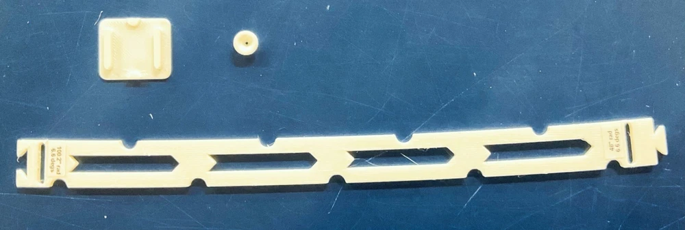 HO Track Placement Snap Template Sections for Laying HO Scale Track NOTE: If purchasing more than one section select "Add to cart" and when all sections have been selected, go to your cart and select "Request combined shipping" for an invoice with combined shipping cost. Request combined shipping - ke "to enable combined shipping costs. These Snap Templates help make the process of laying HO Scale track simpler and easier. They are designed to help ensure your track is laid smoothly and accurately. Whether you are a seasoned model train enthusiast or just starting out, these templates help facilitate placement of HO Scale track at an affordable price. Designed with attention to detail and precision, the track placement Snap Templates snap together by way of a unique dovetail joint locked in place with a connector, making the intended relationship between template sections more accurate to specific curvatures and angles. One connector is included with each Snap Template section. A large selection of curvatures are available including elliptical transition sections that enable smooth transition from a straight section of track to a specific radius of curvature circular arc. This smooth transition provides for a more prototypical scene as a locomotive enters the curve. Each Snap Template section also features center line slots for placing nails into ties, or, for scribing a track center line using a scribing stencil. One scribing stencil is included with each Snap Template section. Snap Template sections are also available with or without openings for hand laying rail spikes. No guarantees or warranties expressed or implied. Please review photos before purchasing. No returns or refunds. Contact the Seller if you have any questions or would like to see other specific curvatures offered. Thanks for looking!