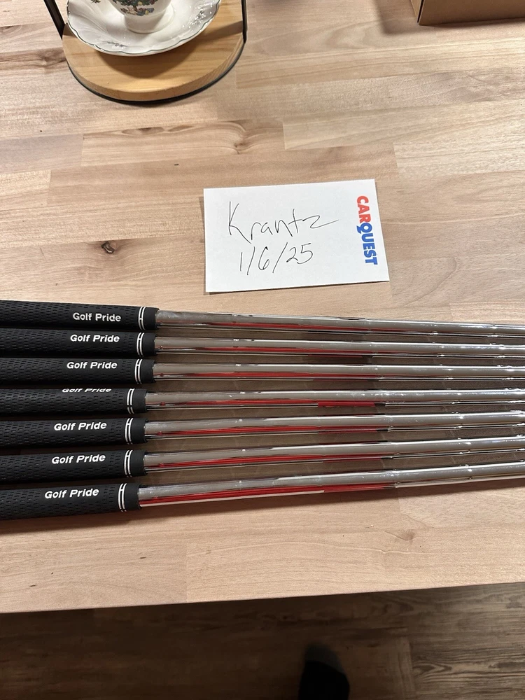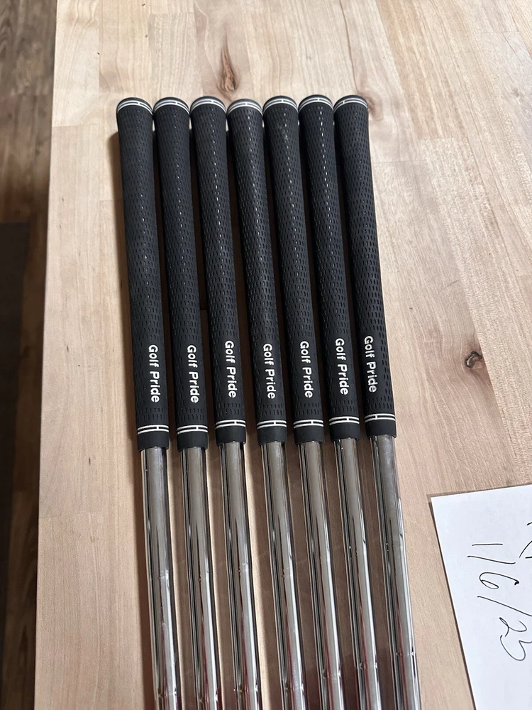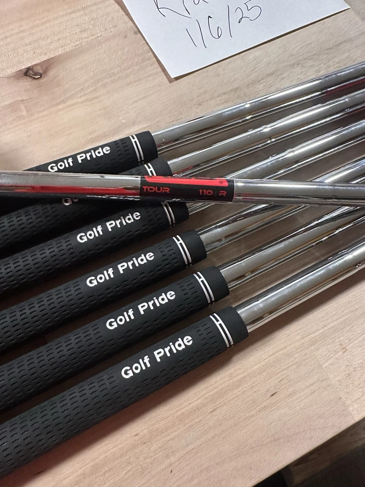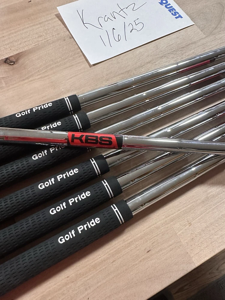 Looking to sell my set of Iron sahft pulls. These shafts were pulled from a brand new iron set and never played. It consists of 4-PW shafts that are standard length. The are KBS Tour 110 regular flex shafts. They are Golf Pride grips on them. They came out of an Edel SMS iron set so they are 0.355 taper tip shafts. Nothing wrong with them, I just changed my irons over to graphite. Let me know if you have any questions