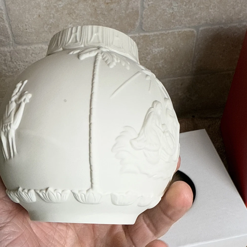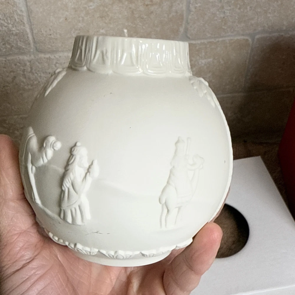 Add a touch of elegance to your Christmas decor with this beautiful Lenox Nativity Ornamental Glow Tealight Candle Holder. The design features a stunning round shape with stars pattern and depicts Jesus, Mary, and Joseph in a nativity scene. The raised relief and luminous features make this candle holder a perfect addition to any room in your home. Crafted from high-quality ceramic and porcelain, this limited edition and retired candle holder is suitable for mini candles and can be used as a decorative collectible or as a functional piece to add a warm and cozy atmosphere to your living space. This candle holder is a perfect gift for any occasion, and its beautiful design will last for years to come.