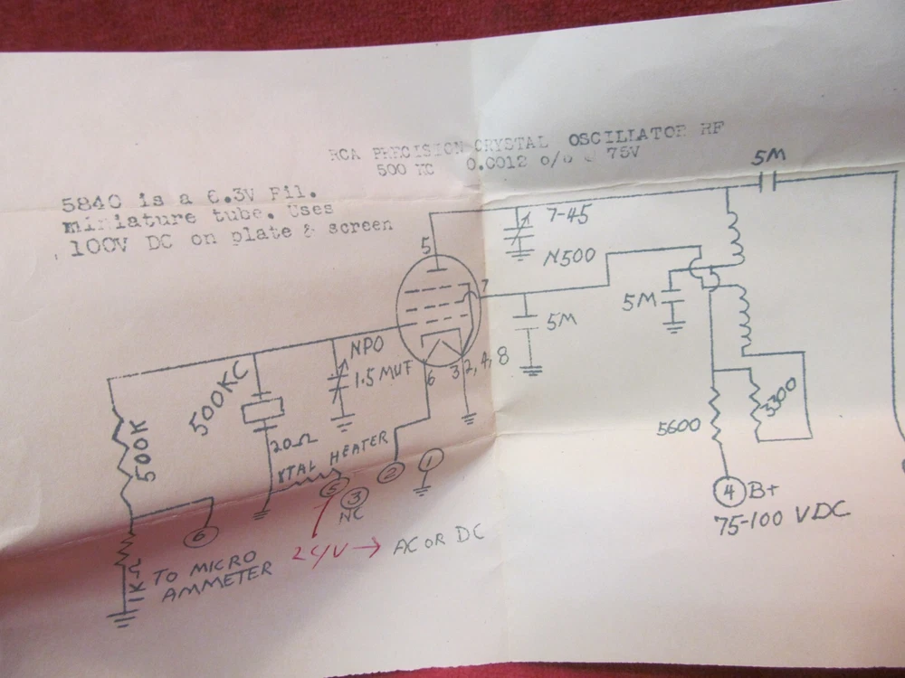 NEW OLD STOCK RCA 500 KC PRECISION CRYSTAL OSCILLATOR WITH SCHEMATIC 8838300-1