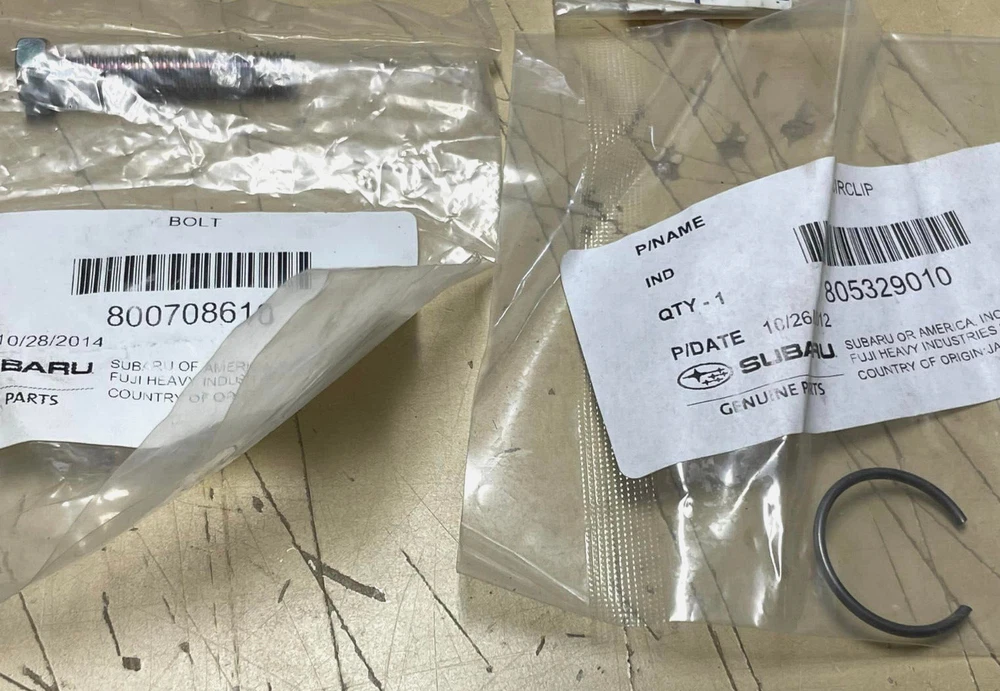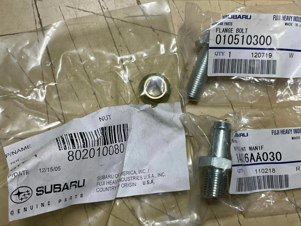 Hello! This listing is for a NEW SUBARU Impreza Parts Lot. Lot includes: (2) 904740011 Tapping Screw, (4) 010508160 Flange Bolt, (1) 805329010 Circlip, (2) 010510300 Flange Bolt, (1) 800708610 Bolt, (1) 806917080 O-Ring, (1) 903100018 Washer, (1) 11122AA360 Oil Pan Seal, (1) 14076AA030 Nipple, (1) 802010080 Nut, (2) 800606850 Bolt, (2) 043504100 Screw and Washer Assembly, and (1) 300706800 Bolt. Item is new old stock, packaging is sealed except for one item. Please ask ALL questions first. Free shipping in the USA.