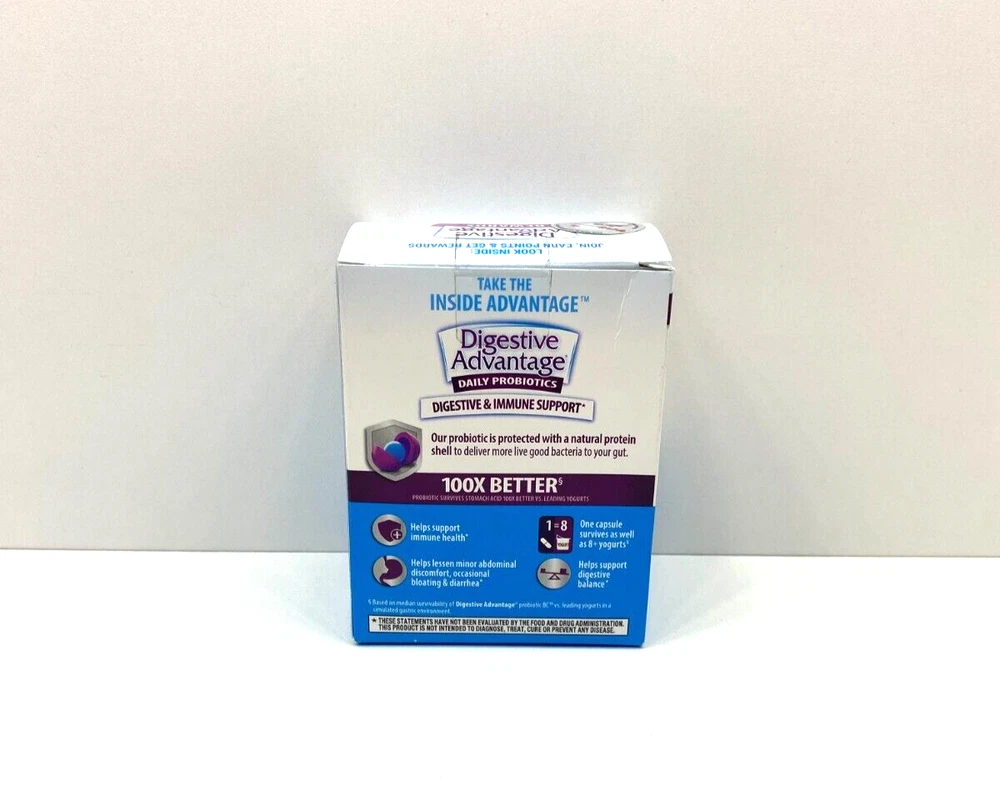 Hello everyone and thank you for looking at our listing! Up for sale is 1 NEW sealed box of Schiff Digestive Advantage Daily Probiotics Digestive & Immune Support Dietary Supplement. ~ This box contains 50 Capsules. Expiration date: 08/2025 Wonderful product...stock up and save! Please note: as is stated in all of our listings, some outer boxes may show signs of shelf wear, this has no effect what so ever on the actual product! Thanks so much for looking and any questions please feel free to ask. We package all of our items with extra care, buy with confidence! Be sure to check out our other listings, new items added weekly. Happy Buying!! FAST FREE SHIPPING WITHIN THE UNITED STATES!