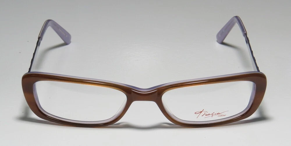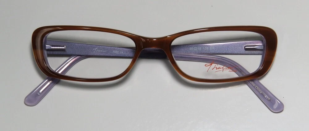 Thalia Abeja Eyeglasses - Surplus Bargains Welcome to our store | contact us - Eyeglasses - - Sunglasses - - Reading Glasses - - Eyewear Cases - Thalia Abeja Eyeglasses The frame is sold with demo lenses that have a logo stamped on them in ink. The frame can be fitted with real lenses at most optical stores. This frame provides comfortable fit and flatters a variety of face shapes. These eyeglasses are made of metal and high quality, durable acetate plastic. The frame has spring hinges. Spring hinge temples prevent you from stretching the fit of your glasses and ensure that they remain intact and not become loose or out of shape. Please keep in mind that original case is not included with this frame. However, we will include a generic hard case or pouch at no extra charge to keep your eyeglasses protected. This is an authentic piece of eyewear acquired directly from the manufacturer. Please feel free to ask any questions you may have about this item. We have more similar items for sale listed in our eBay store. Condition : New Brand : Thalia Style : Abeja Size : 48-16-135 Lens height : 23 mm Color code : br Frame color : brown / lavender Spring hinges : yes Hard case : generic MSRP : $95.00 About STORE CONTACT US if you have any questions or concerns about our eyewear products or online shopping experience. Your feedback is valuable to us, and we are always here to assist you. quick links Listings Contact Us