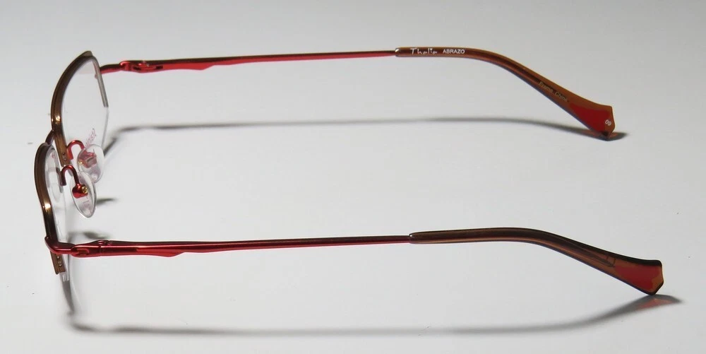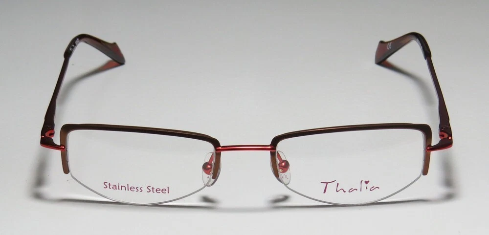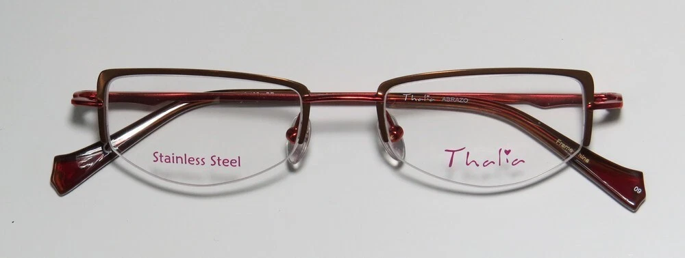 Thalia Abrazo Eyeglasses - Surplus Bargains Welcome to our store | contact us - Eyeglasses - - Sunglasses - - Reading Glasses - - Eyewear Cases - Thalia Abrazo Eyeglasses The frame is sold with demo lenses that have a logo stamped on them in ink. The frame can be fitted with real lenses at most optical stores. This frame provides comfortable fit and flatters a variety of face shapes. These eyeglasses are made of corrosion resistant and strong metal. The frame has spring hinges. Spring hinge temples prevent you from stretching the fit of your glasses and ensure that they remain intact and not become loose or out of shape. Please keep in mind that original case is not included with this frame. However, we will include a generic hard case or pouch at no extra charge to keep your eyeglasses protected. This is an authentic piece of eyewear acquired directly from the manufacturer. Please feel free to ask any questions you may have about this item. We have more similar items for sale listed in our eBay store. Condition : New Brand : Thalia Style : Abrazo Size : 45-18-135 Lens height : 26 mm Color code : br Frame color : brown / red Spring hinges : yes Hard case : generic MSRP : $95.00 About STORE CONTACT US if you have any questions or concerns about our eyewear products or online shopping experience. Your feedback is valuable to us, and we are always here to assist you. quick links Listings Contact Us