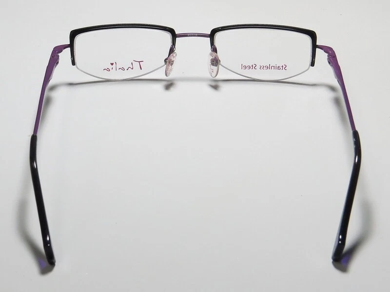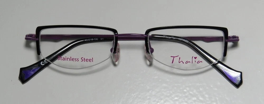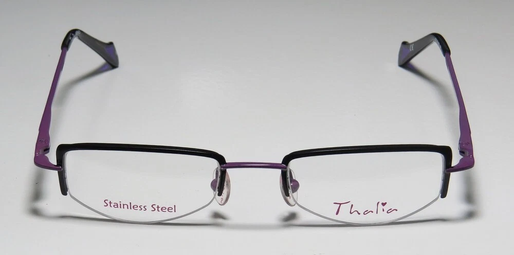 Thalia Abrazo Eyeglasses - Surplus Bargains Welcome to our store | contact us - Eyeglasses - - Sunglasses - - Reading Glasses - - Eyewear Cases - Thalia Abrazo Eyeglasses The frame is sold with demo lenses that have a logo stamped on them in ink. The frame can be fitted with real lenses at most optical stores. This frame provides comfortable fit and flatters a variety of face shapes. These eyeglasses are made of corrosion resistant and strong metal. The frame has spring hinges. Spring hinge temples prevent you from stretching the fit of your glasses and ensure that they remain intact and not become loose or out of shape. Please keep in mind that original case is not included with this frame. However, we will include a generic hard case or pouch at no extra charge to keep your eyeglasses protected. This is an authentic piece of eyewear acquired directly from the manufacturer. Please feel free to ask any questions you may have about this item. We have more similar items for sale listed in our eBay store. Condition : New Brand : Thalia Style : Abrazo Size : 43-18-130 Lens height : 24 mm Color code : bk Frame color : black / purple Spring hinges : yes Hard case : generic MSRP : $95.00 About STORE CONTACT US if you have any questions or concerns about our eyewear products or online shopping experience. Your feedback is valuable to us, and we are always here to assist you. quick links Listings Contact Us