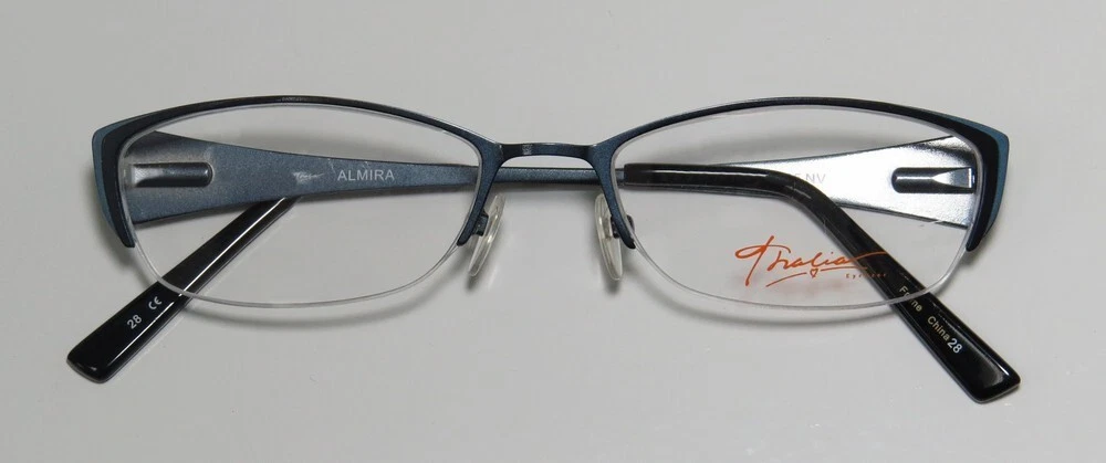 Thalia Almira Eyeglasses - Surplus Bargains Welcome to our store | contact us - Eyeglasses - - Sunglasses - - Reading Glasses - - Eyewear Cases - Thalia Almira Eyeglasses The frame is sold with demo lenses that have a logo stamped on them in ink. The frame can be fitted with real lenses at most optical stores. This frame provides comfortable fit and flatters a variety of face shapes. These eyeglasses are made of corrosion resistant and strong metal. The frame has spring hinges. Spring hinge temples prevent you from stretching the fit of your glasses and ensure that they remain intact and not become loose or out of shape. Please keep in mind that original case is not included with this frame. However, we will include a generic hard case or pouch at no extra charge to keep your eyeglasses protected. This is an authentic piece of eyewear acquired directly from the manufacturer. Please feel free to ask any questions you may have about this item. We have more similar items for sale listed in our eBay store. Condition : New Brand : Thalia Style : Almira Size : 48-17-130 Lens height : 26 mm Color code : nv Frame color : navy / blue Spring hinges : yes Hard case : generic MSRP : $95.00 About STORE CONTACT US if you have any questions or concerns about our eyewear products or online shopping experience. Your feedback is valuable to us, and we are always here to assist you. quick links Listings Contact Us