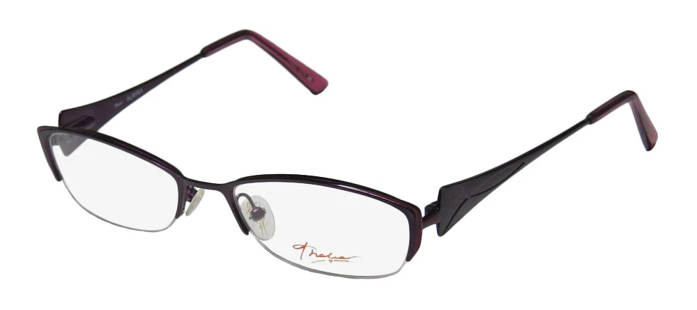 Thalia Almira Eyeglasses - Surplus Bargains Welcome to our store | contact us - Eyeglasses - - Sunglasses - - Reading Glasses - - Eyewear Cases - Thalia Almira Eyeglasses The frame is sold with demo lenses that have a logo stamped on them in ink. The frame can be fitted with real lenses at most optical stores. This frame provides comfortable fit and flatters a variety of face shapes. These eyeglasses are made of corrosion resistant and strong metal. The frame has spring hinges. Spring hinge temples prevent you from stretching the fit of your glasses and ensure that they remain intact and not become loose or out of shape. Please keep in mind that original case is not included with this frame. However, we will include a generic hard case or pouch at no extra charge to keep your eyeglasses protected. This is an authentic piece of eyewear acquired directly from the manufacturer. Please feel free to ask any questions you may have about this item. We have more similar items for sale listed in our eBay store. Condition : New Brand : Thalia Style : Almira Size : 48-17-130 Lens height : 26 mm Color code : be Frame color : berry / purple Spring hinges : yes Hard case : generic MSRP : $95.00 About STORE CONTACT US if you have any questions or concerns about our eyewear products or online shopping experience. Your feedback is valuable to us, and we are always here to assist you. quick links Listings Contact Us