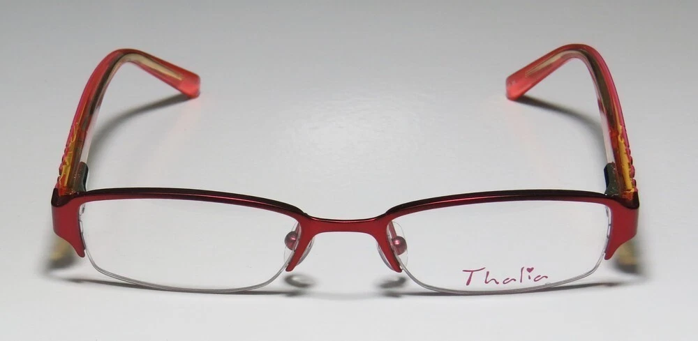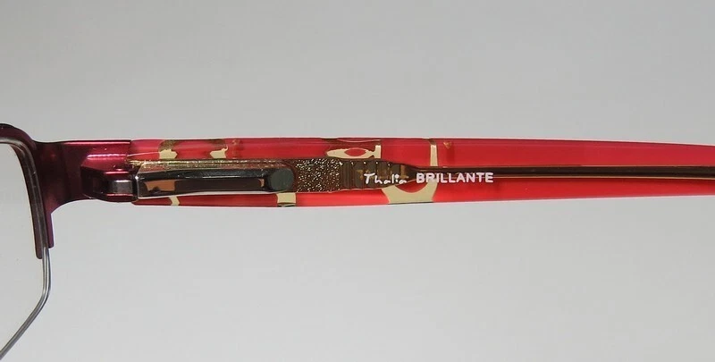 Thalia Brillante Eyeglasses - Surplus Bargains Welcome to our store | contact us - Eyeglasses - - Sunglasses - - Reading Glasses - - Eyewear Cases - Thalia Brillante Eyeglasses The frame is sold with demo lenses that have a logo stamped on them in ink. The frame can be fitted with real lenses at most optical stores. This frame provides comfortable fit and flatters a variety of face shapes. These eyeglasses are made of metal and high quality, durable acetate plastic. The frame has spring hinges. Spring hinge temples prevent you from stretching the fit of your glasses and ensure that they remain intact and not become loose or out of shape. Please keep in mind that original case is not included with this frame. However, we will include a generic hard case or pouch at no extra charge to keep your eyeglasses protected. This is an authentic piece of eyewear acquired directly from the manufacturer. Please feel free to ask any questions you may have about this item. We have more similar items for sale listed in our eBay store. Condition : New Brand : Thalia Style : Brillante Size : 48-17-130 Lens height : 24 mm Color code : rd Frame color : red / pink Spring hinges : yes Hard case : generic MSRP : $95.00 About STORE CONTACT US if you have any questions or concerns about our eyewear products or online shopping experience. Your feedback is valuable to us, and we are always here to assist you. quick links Listings Contact Us
