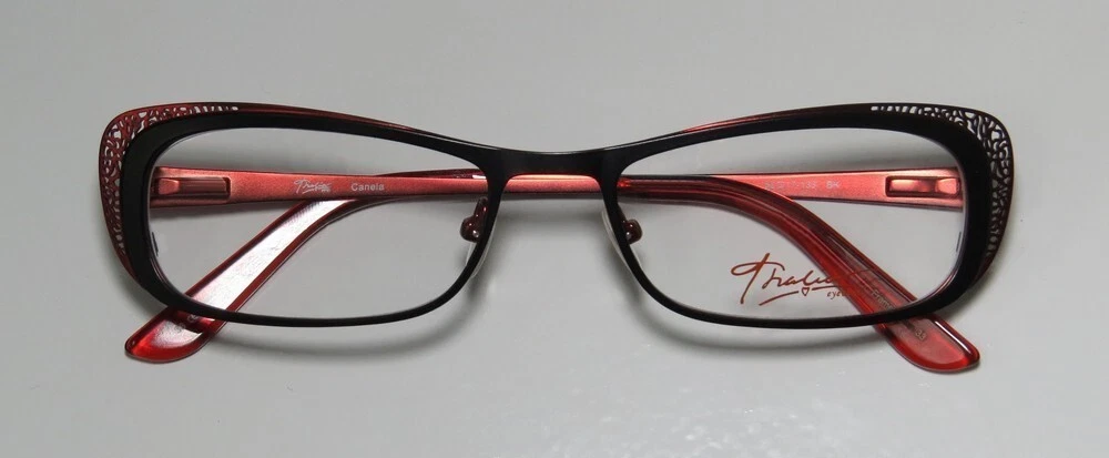 Thalia Canela Eyeglasses - Surplus Bargains Welcome to our store | contact us - Eyeglasses - - Sunglasses - - Reading Glasses - - Eyewear Cases - Thalia Canela Eyeglasses The frame is sold with demo lenses that have a logo stamped on them in ink. The frame can be fitted with real lenses at most optical stores. This frame provides comfortable fit and flatters a variety of face shapes. These eyeglasses are made of corrosion resistant and strong metal. The frame has spring hinges. Spring hinge temples prevent you from stretching the fit of your glasses and ensure that they remain intact and not become loose or out of shape. Please keep in mind that original case is not included with this frame. However, we will include a generic hard case or pouch at no extra charge to keep your eyeglasses protected. This is an authentic piece of eyewear acquired directly from the manufacturer. Please feel free to ask any questions you may have about this item. We have more similar items for sale listed in our eBay store. Condition : New Brand : Thalia Style : Canela Size : 52-17-133 Lens height : 27 mm Color code : bk Frame color : black / red Spring hinges : yes Hard case : generic MSRP : $95.00 About STORE CONTACT US if you have any questions or concerns about our eyewear products or online shopping experience. Your feedback is valuable to us, and we are always here to assist you. quick links Listings Contact Us