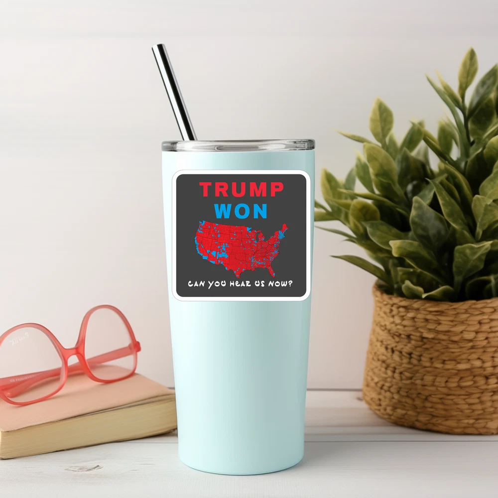 Display your support with this powerful "Trump Won" sticker, featuring a striking U.S. map primarily in red, symbolizing the states that showed support for Donald Trump and Republican values. The design emphasizes Trump's success in securing key areas across the nation, turning much of the map red and winning seven critical swing states. This bold decal is perfect for dedicated supporters who want to celebrate Trump’s influence and legacy on laptops, water bottles, binders, and other smooth surfaces. Key Features: Powerful "Trump Won" Design – Features a red U.S. map symbolizing Trump's widespread support, including wins in key swing states. Perfect for Indoor Use – Ideal for personal items like laptops, notebooks, and binders. Durable Vinyl Construction – High-quality vinyl for a lasting look. Note: not suitable for extended outdoor use or UV exposure. Easy Application and Removal – Applies smoothly and removes without residue. Patriotic and Unique – A great collectible for Trump supporters and those who want to make a statement. Celebrate a historic moment with this "Trump Won" sticker, proudly showcasing the nation’s support. Add it to your collection and let your voice be seen!