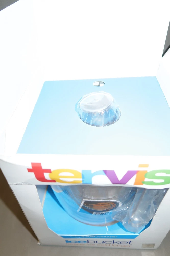 This is a Tervis Tumbler Ice Bucket Indiana Pacers NBA 2.5 QT Container New in Box. Comes with Ice Bucket, Lid, Handle and Tongs. The Tervis box is banged up from storage. Measures approx.: 8.5" Tall with Lid x 7.25" Tall without Lid x 7" Diameter Track Page Views With Auctiva's Counter