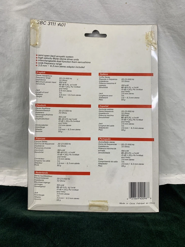 NOS. Tape at the back has separated, but no signs of use. See pics. Age unknown. Dent in package. Foam ear covers do not seem to be shedding.