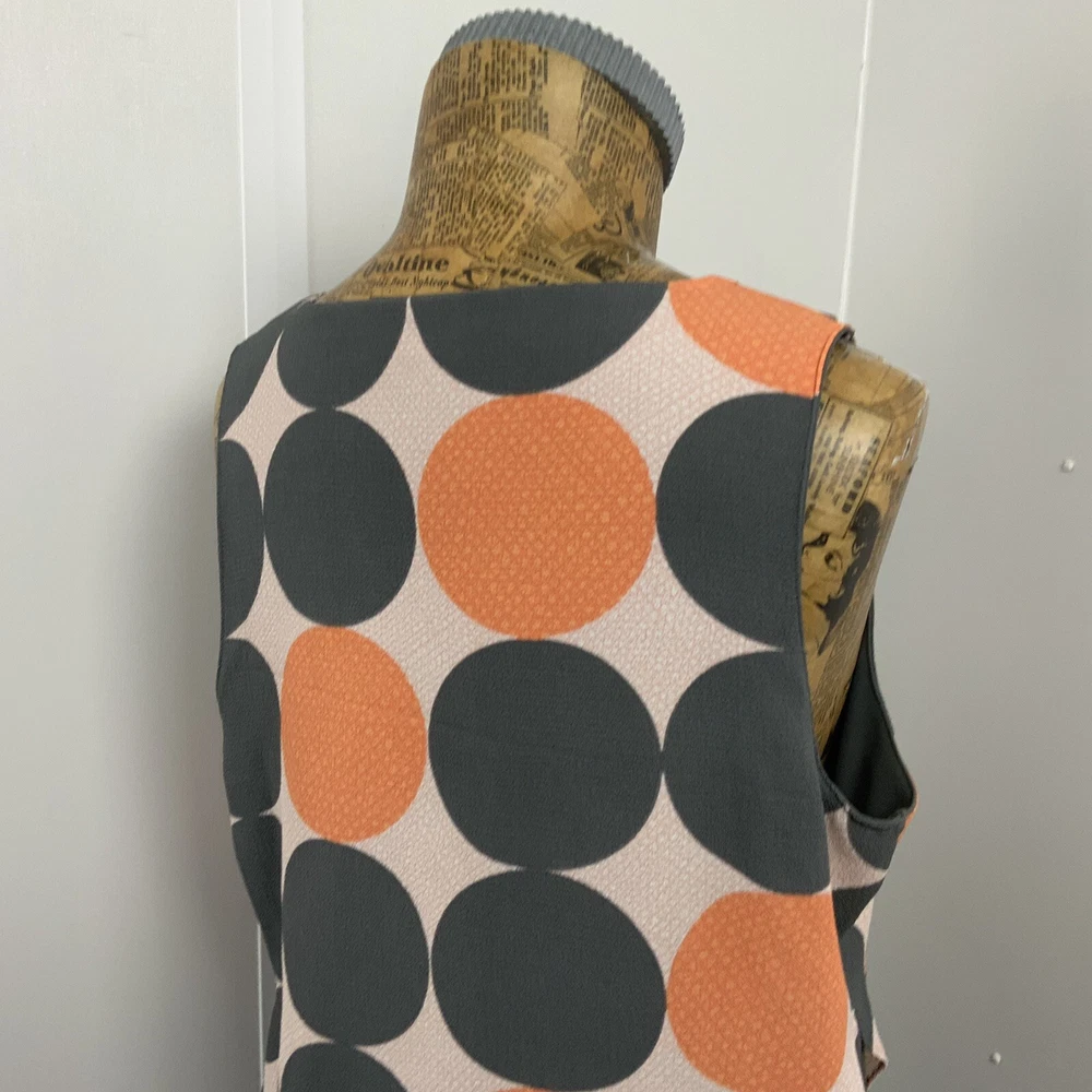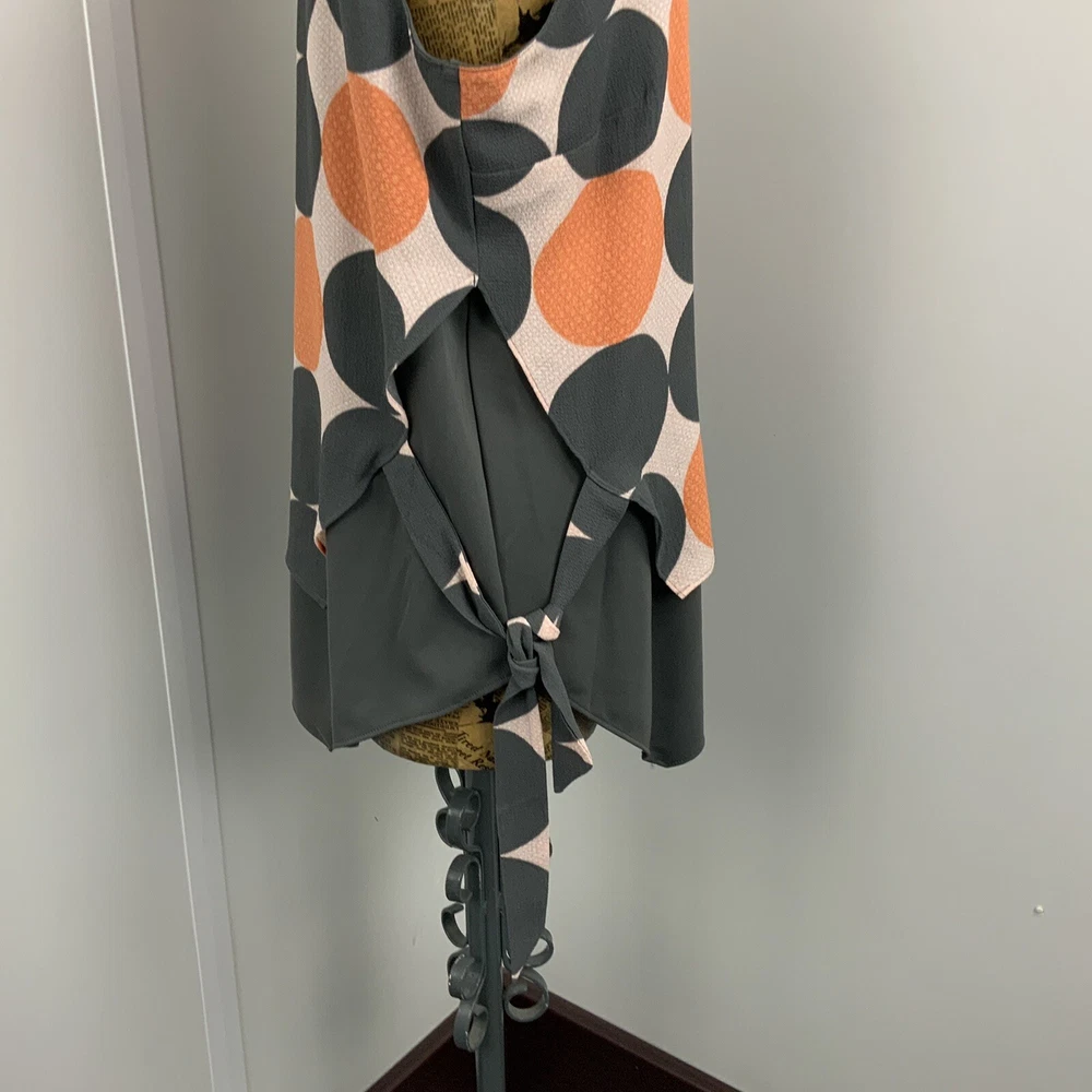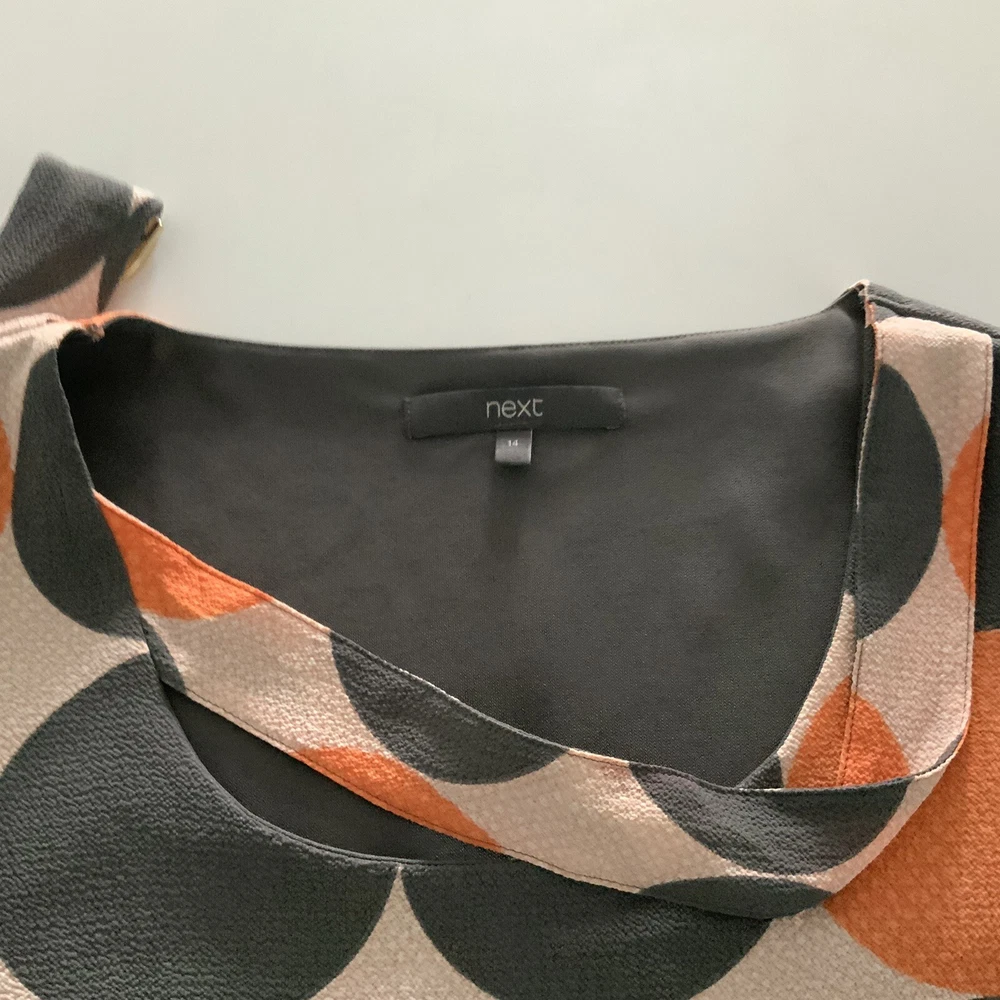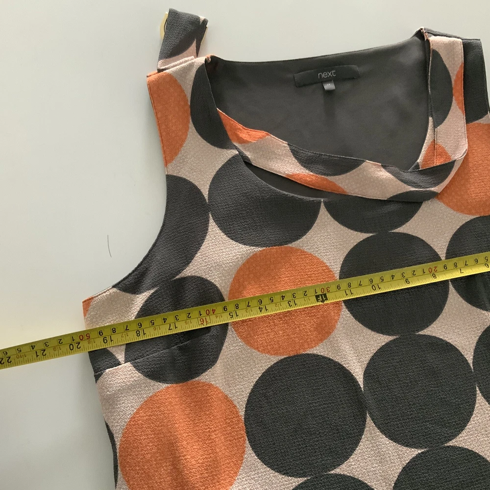 NEXT WOMENS VEST TANK Grey Orange Geometric Uk 14 Perfect for a casual day in style GOOD used condition light signs of use no rips stains or faults See images for sizing of width of top from seam to seam at armpit level when laid flat and also length from top at nape of neck under collar to lower hem Shipped promptly within one working day of sale NOTE there is PREMIUM delivery available at an additional cost please select the upgraded postage on check out