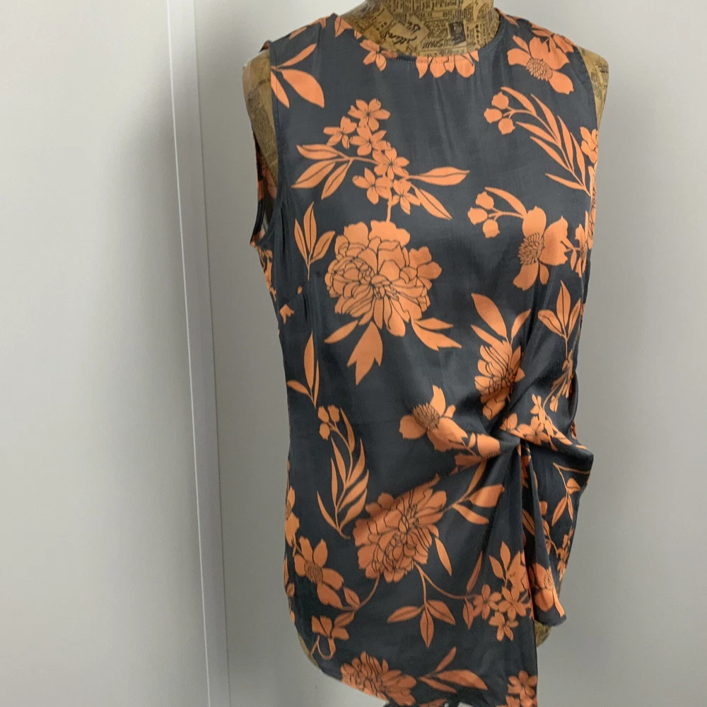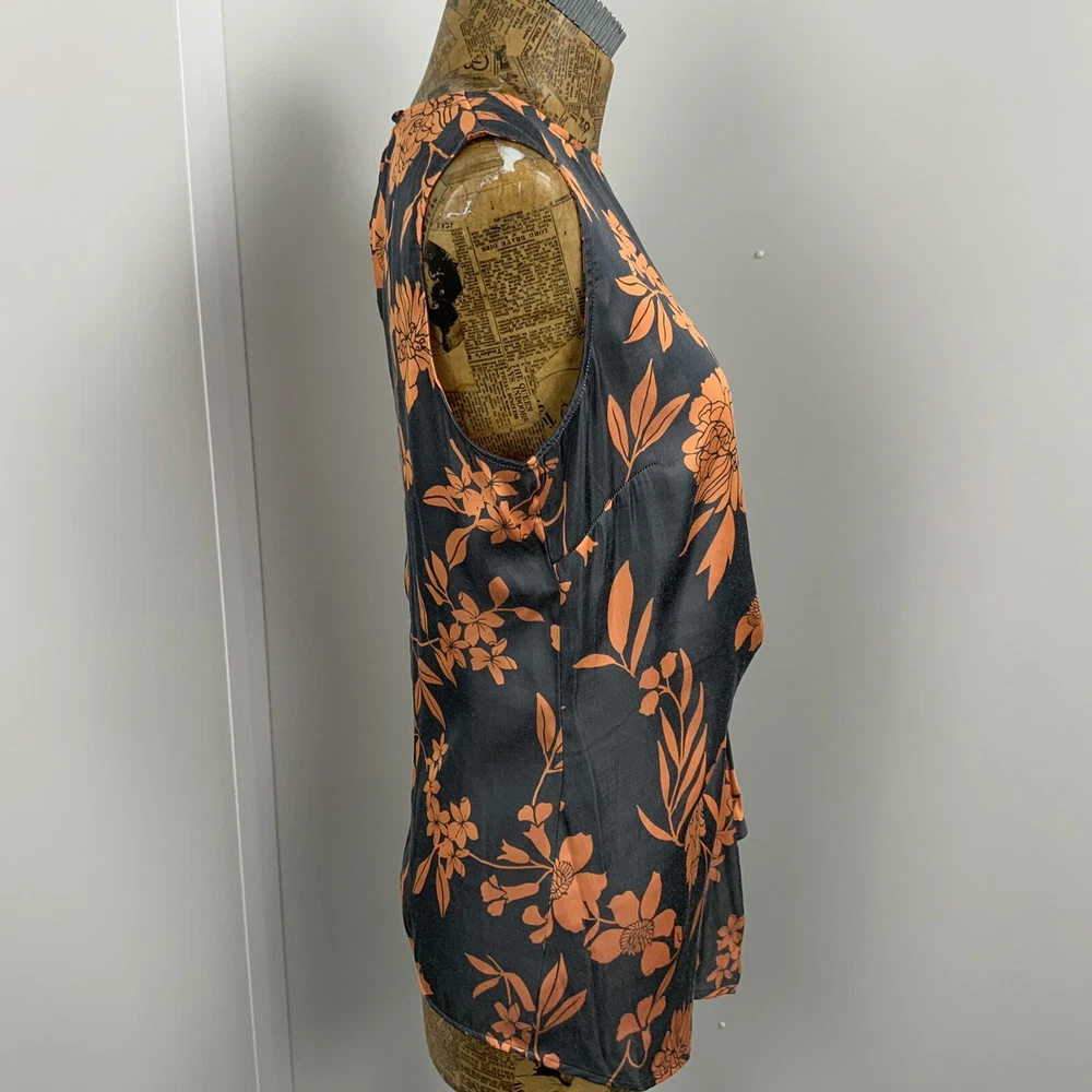 NEXT UK 8 Womens Tank Top Vest grey orange floral Perfect for a casual day in style GOOD used condition See images for sizing of width of top from seam to seam at armpit level when laid flat and also length from top at nape of neck under collar to lower hem Shipped promptly within one working day of sale NOTE there is PREMIUM delivery available at an additional cost please select the upgraded postage on check out