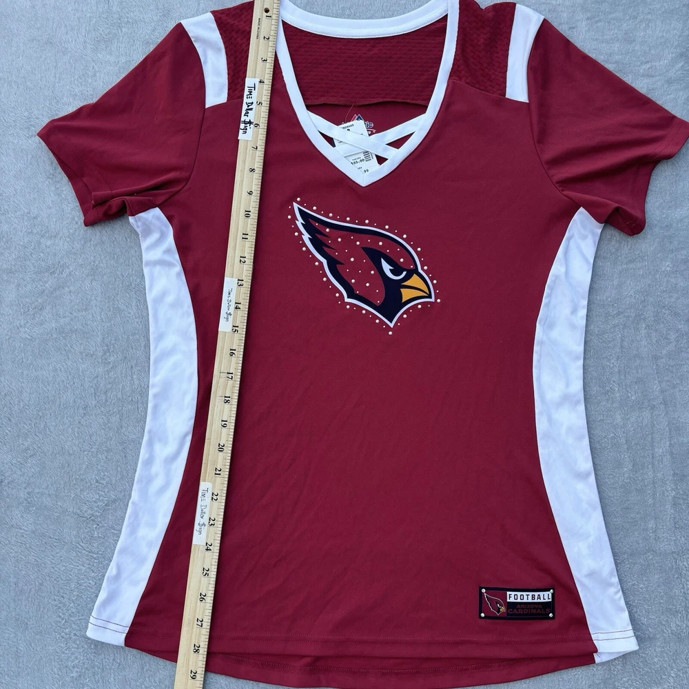 Officially Licensed: Yes Sport: Football Team: Arizona Cardinals Gender: Women Color: Red Custom SKU: 12 Pre & Post Season: Regular Season Size: XL Country/Region of Manufacture: Vietnam League: National Football League (NFL) gtin13: Does not apply Brand: Majestic Product: Shirt UPC: Does not apply