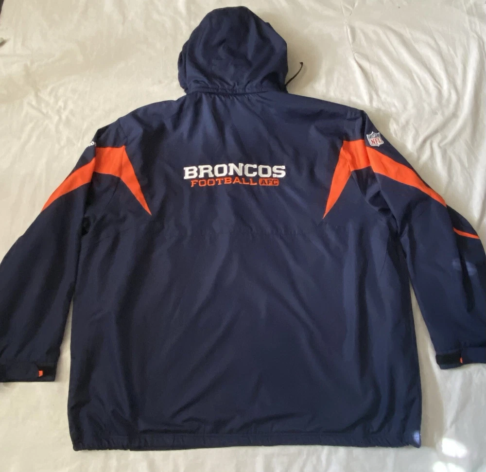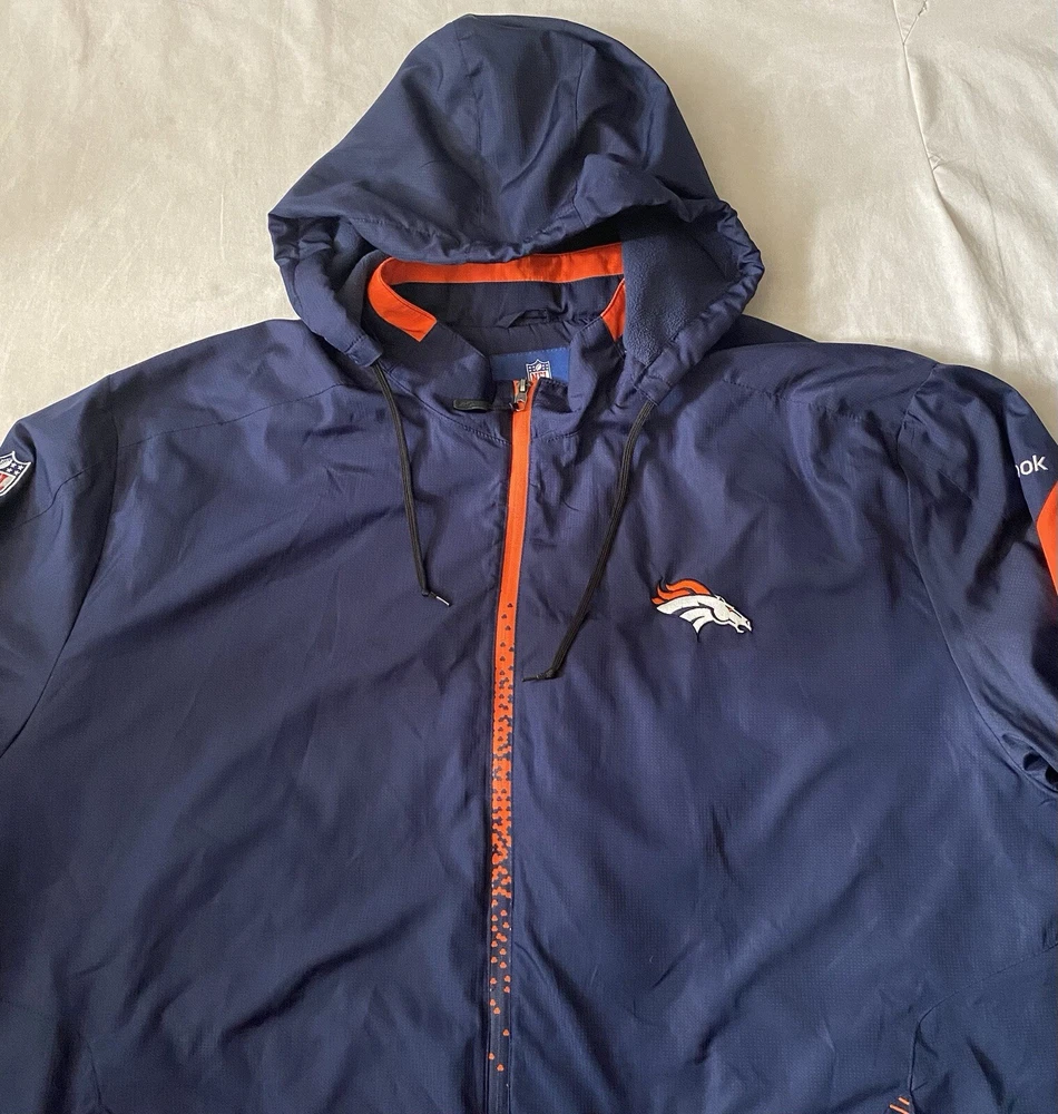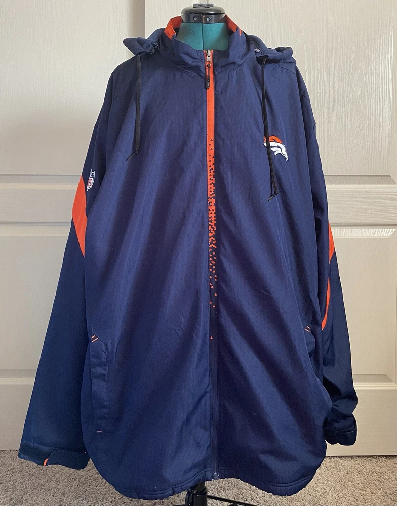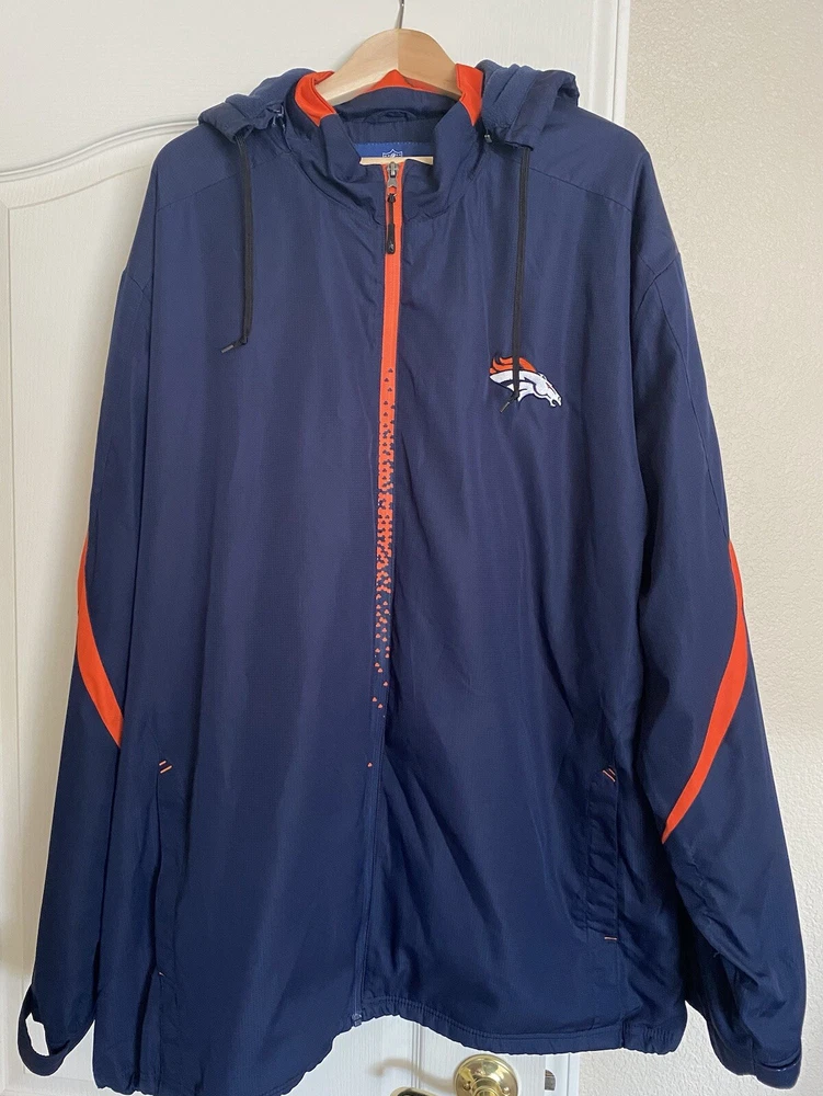 HomeNFL Denver Broncos On Field Lined Windbreaker Jacket Hooded Zip Size 4XL