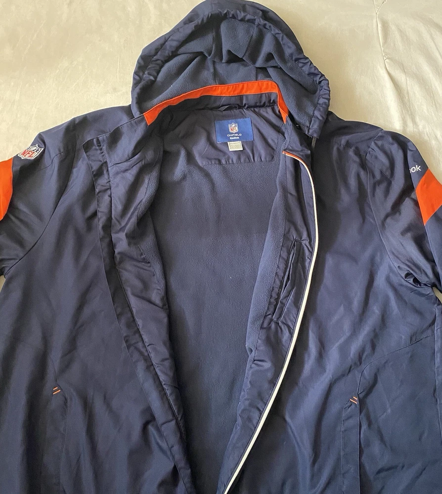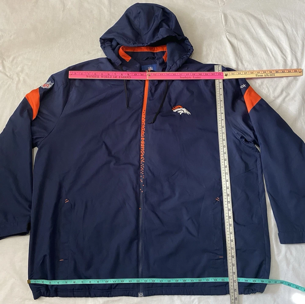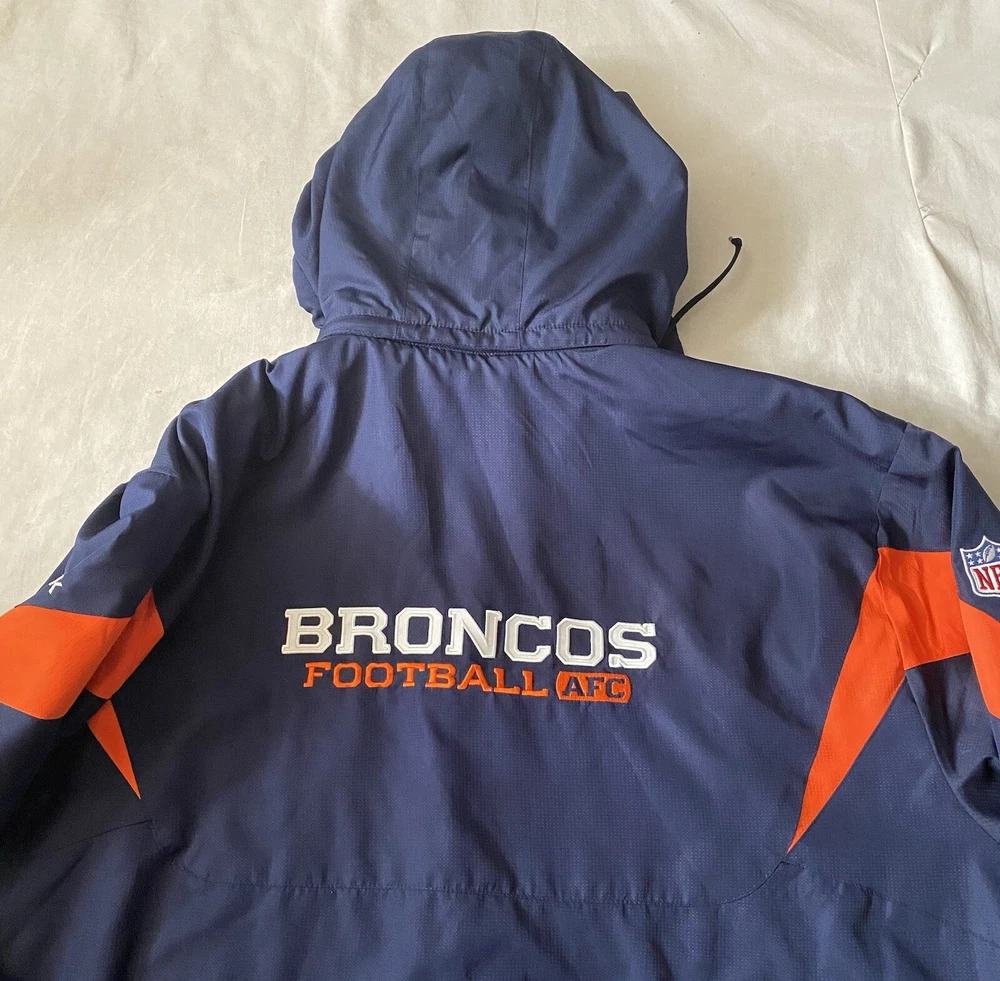 HomeNFL Denver Broncos On Field Lined Windbreaker Jacket Hooded Zip Size 4XL