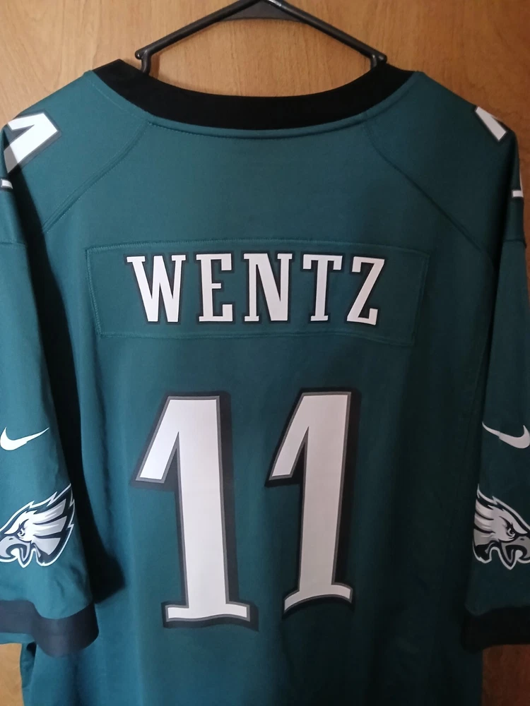 Show your love and support for the National Football League team with this Nike On Field Eagles Wentz #11 Jersey in size 2XL. The jersey features the team's colors and logos with the player's name and number prominently displayed on the back. It's perfect for game day or any day you want to show off your NFL pride. This authentic NFL product is made from high-quality materials to ensure durability and comfort. It's a must-have for any football fan and a great addition to your sports memorabilia collection. Order now and get ready to cheer on your favorite team in style! NEW WITHOUT TAGS!