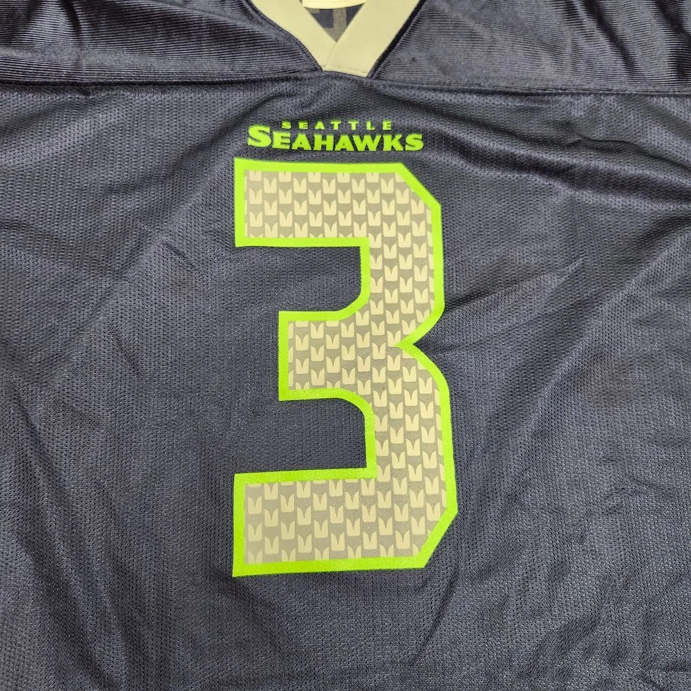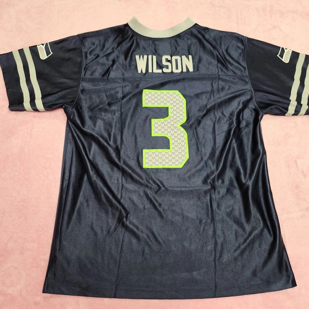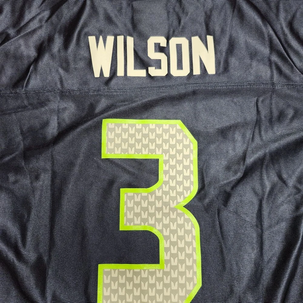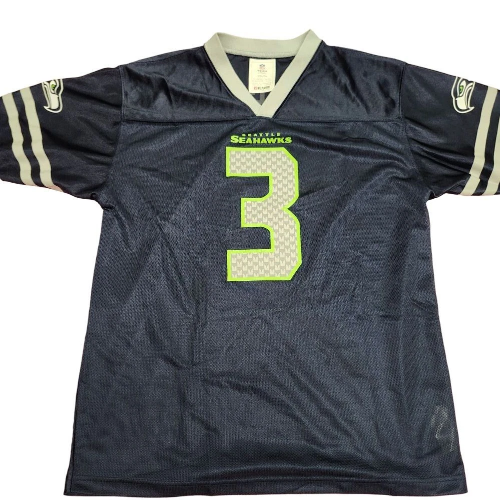 Score big with this authentic Seattle Seahawks youth jersey! Perfect for young fans cheering on game day or playing backyard football. Features the iconic #3 Wilson design with eye-catching neon green accents and the distinctive Seahawks logo. Ideal for sports events, fan photos, and showing team spirit at school or casual outings. Sport: Football Keywords: seahawks jersey, wilson jersey, youth football jersey, nfl kids, seattle seahawks, team apparel, sports fan gear, football merchandise, kids sports wear, number 3 jersey