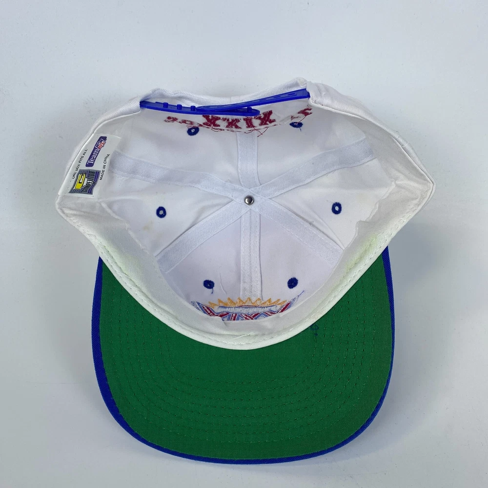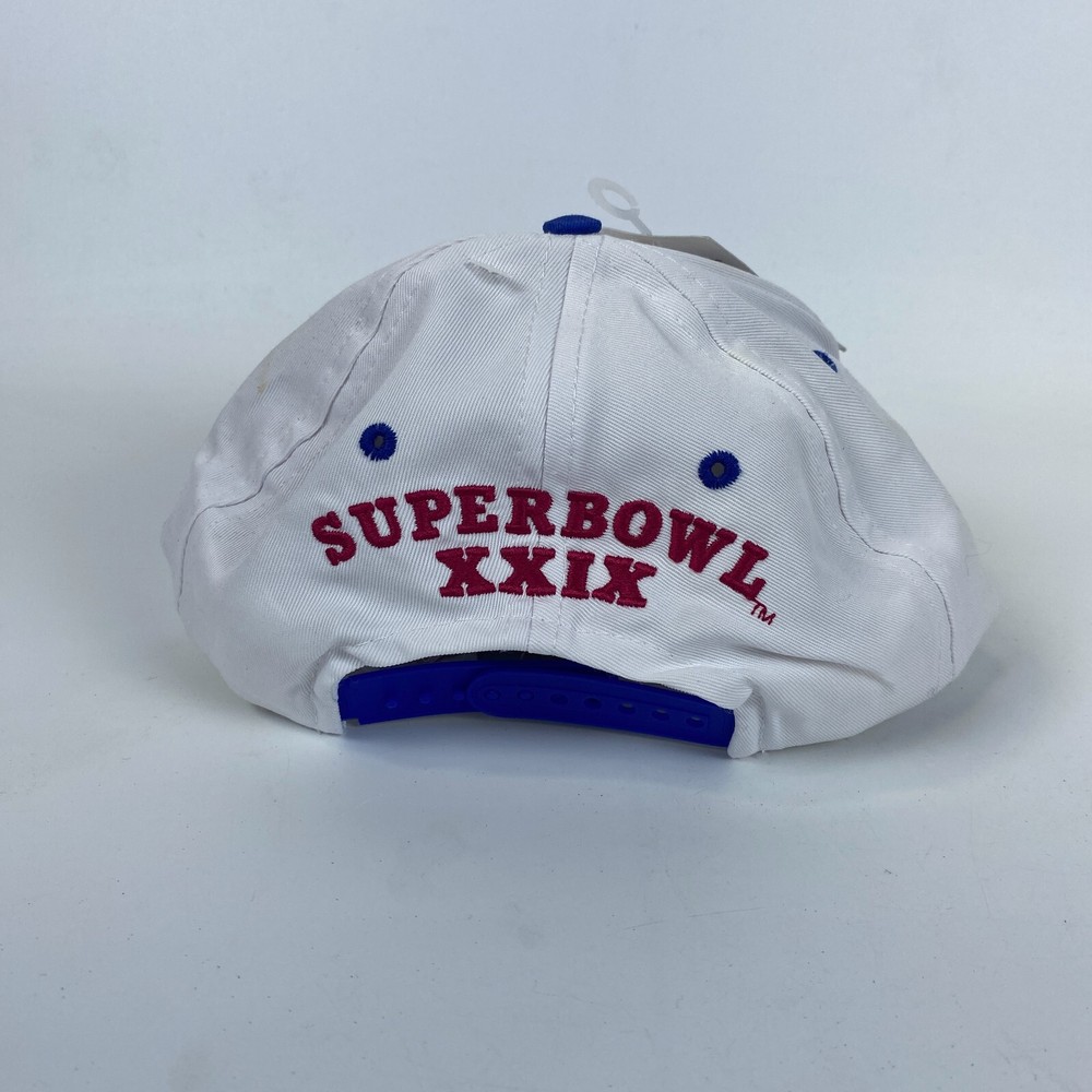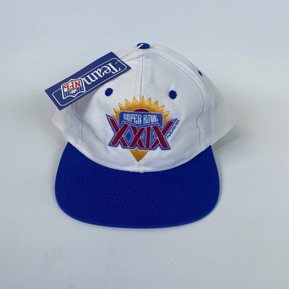 Show off your love for Team NFL with this officially licensed Super Bowl XXIX baseball cap. The white and blue colors perfectly complement the embroidered logo, making it a stylish addition to any fan's collection. This one size fits all cap is perfect for men who want to show their support for the National Football League. Made in China, this high-quality cap is a must-have for any football fan. Get yours today and be ready for the next Super Bowl! Satisfaction guaranteed. Free return shipping.